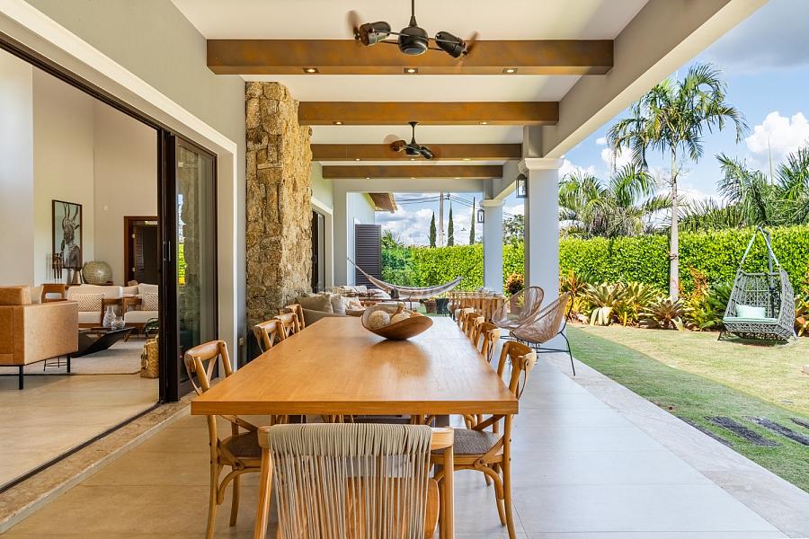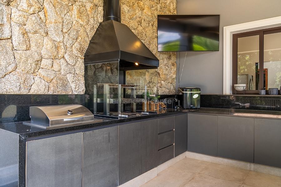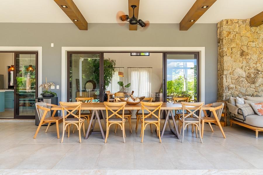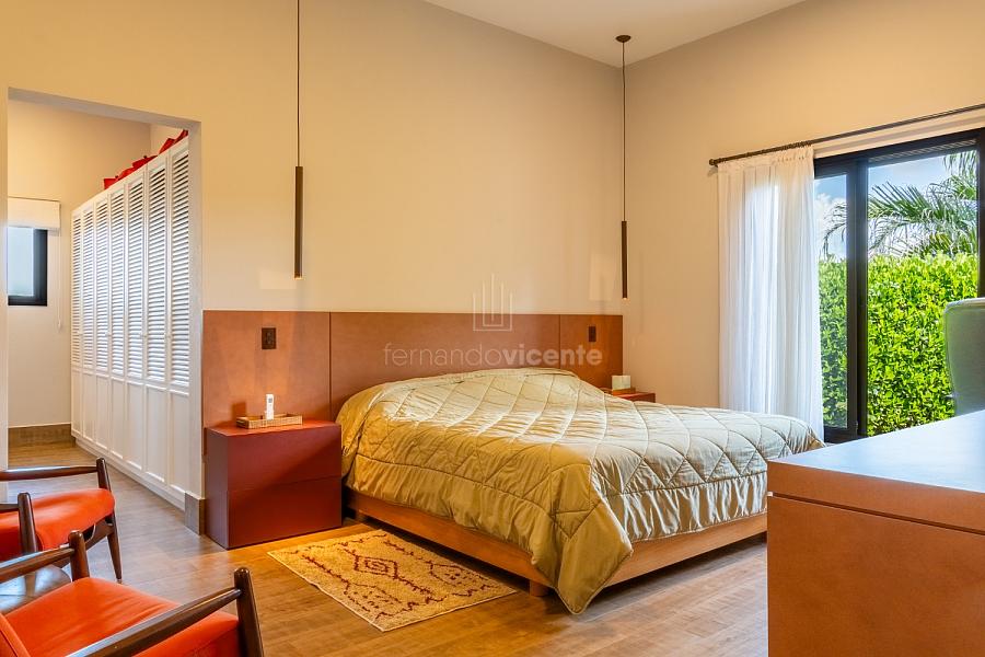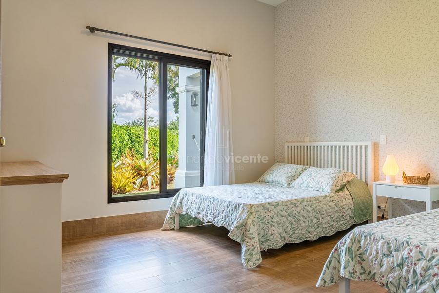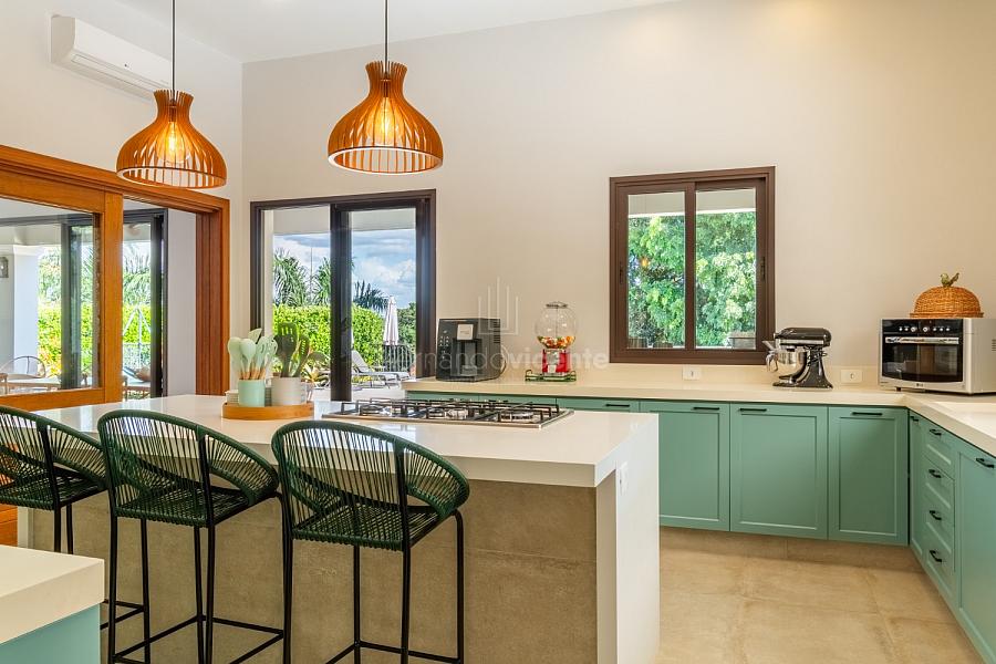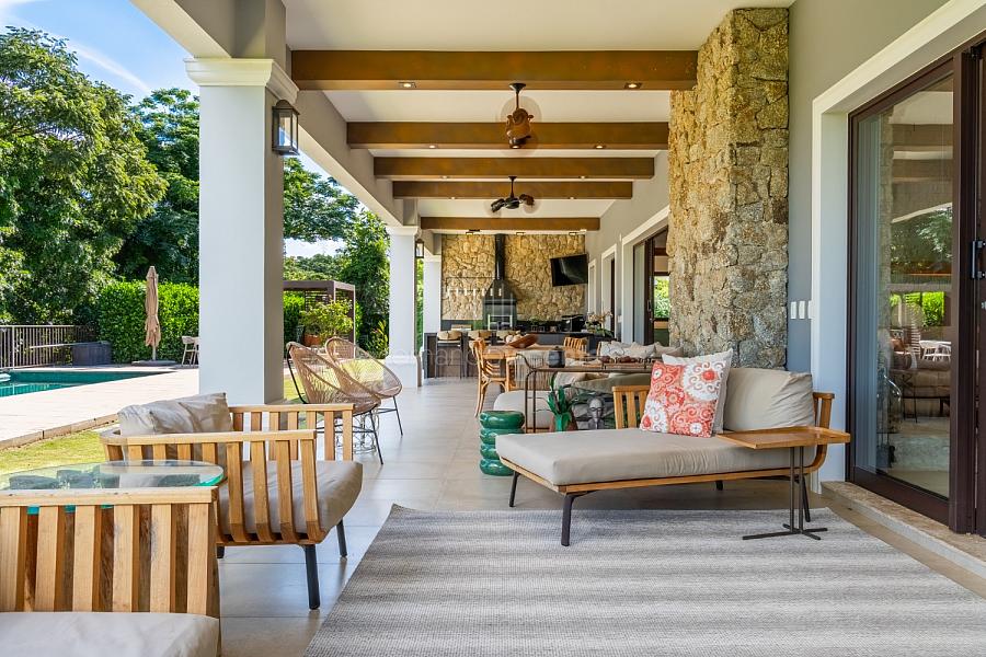 Do lado de fora, o lazer acompanha o mesmo nível de cuidado: piscina de 30 m², deck e paisagismo, além de uma gourmet equipada com churrasqueiras e ilha refrigerada de 1.000L — tudo integrado, pronto para momentos memoráveis. A casa ainda traz soluções que valorizam o dia a dia, como aquecimento solar, infraestrutura planejada e garagem coberta para 4 veículos.