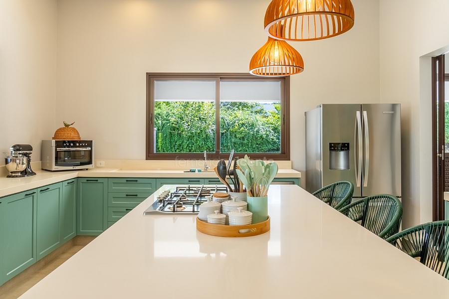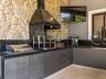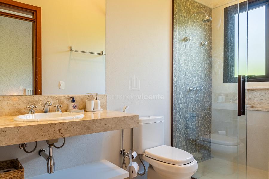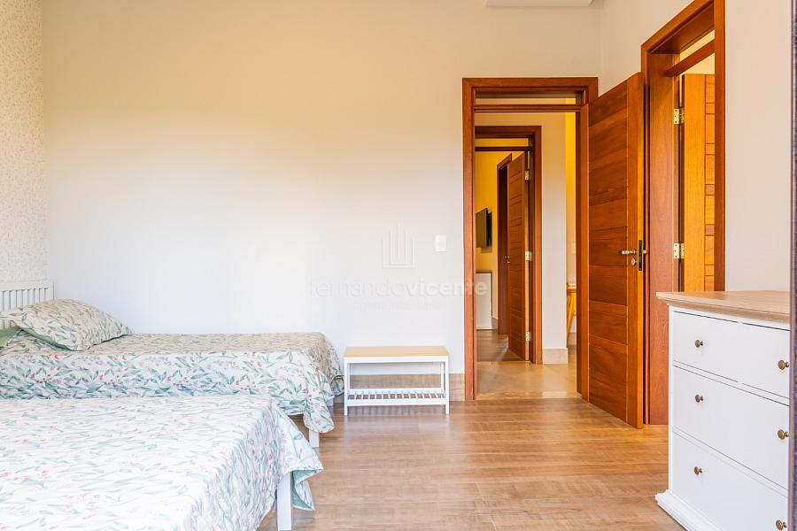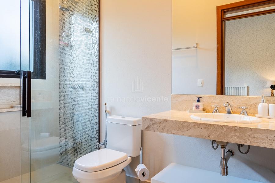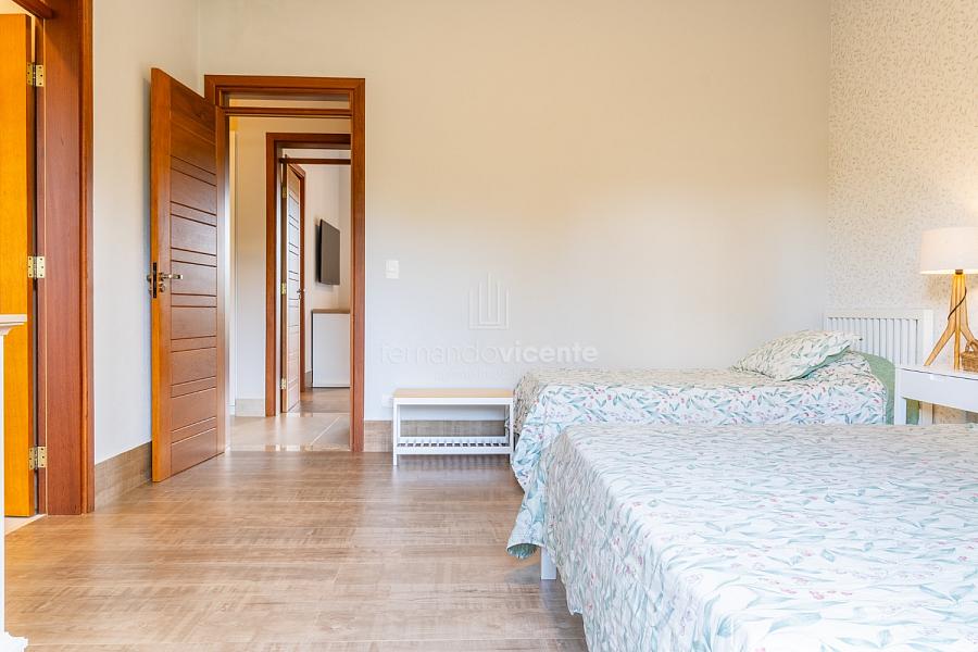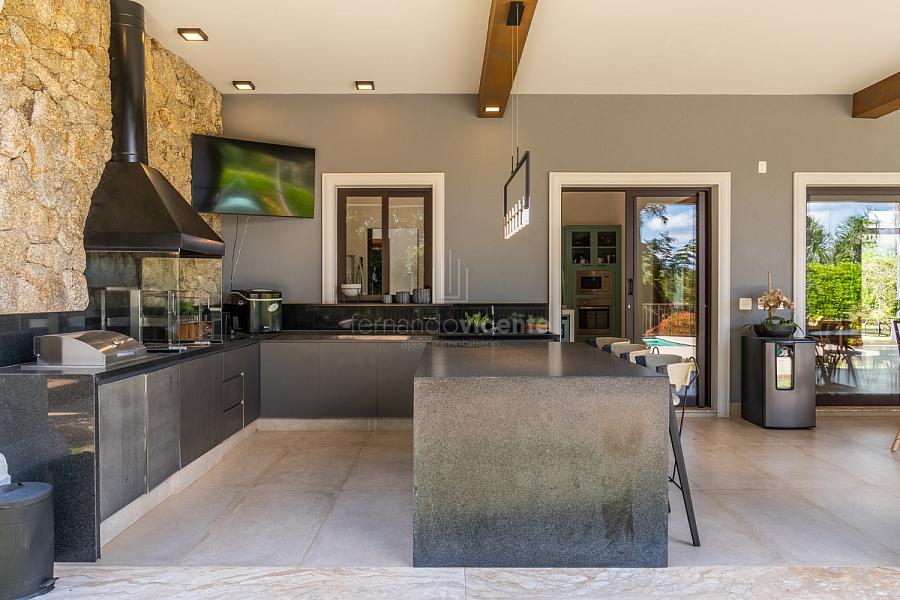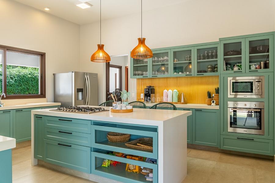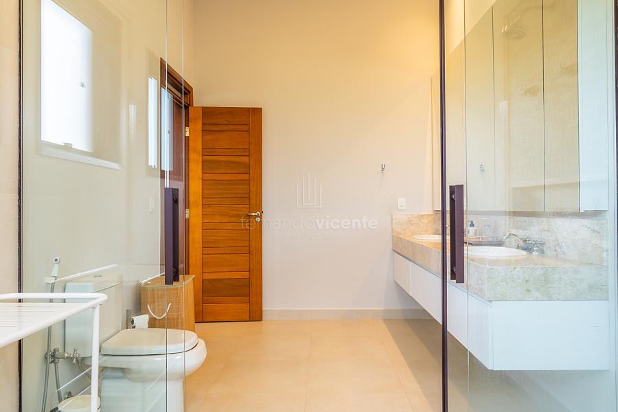 Do lado de fora, o lazer acompanha o mesmo nível de cuidado: piscina de 30 m², deck e paisagismo, além de uma gourmet equipada com churrasqueiras e ilha refrigerada de 1.000L — tudo integrado, pronto para momentos memoráveis. A casa ainda traz soluções que valorizam o dia a dia, como aquecimento solar, infraestrutura planejada e garagem coberta para 4 veículos.