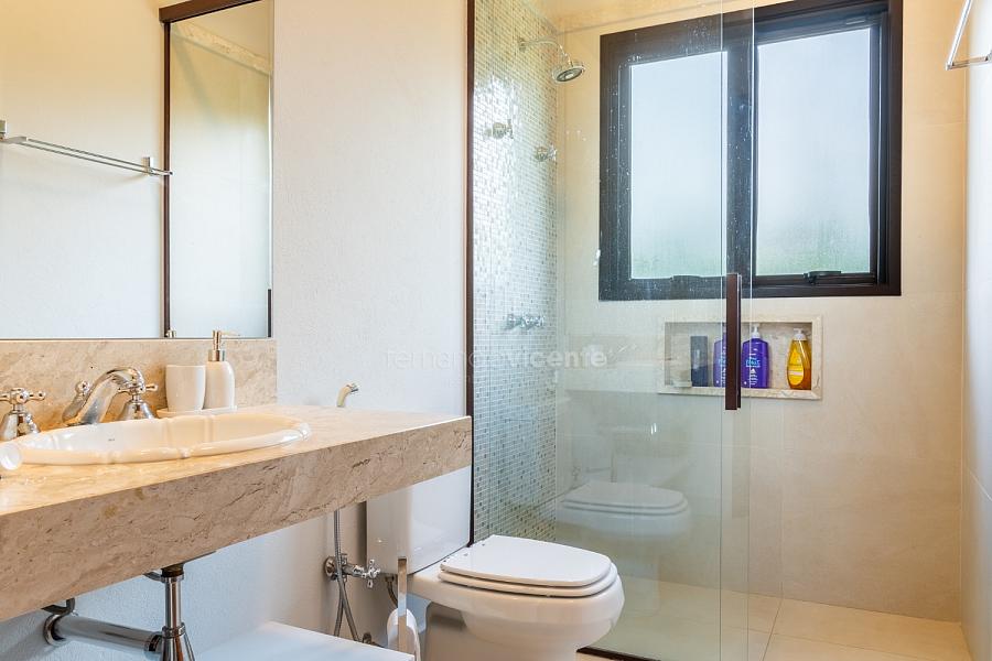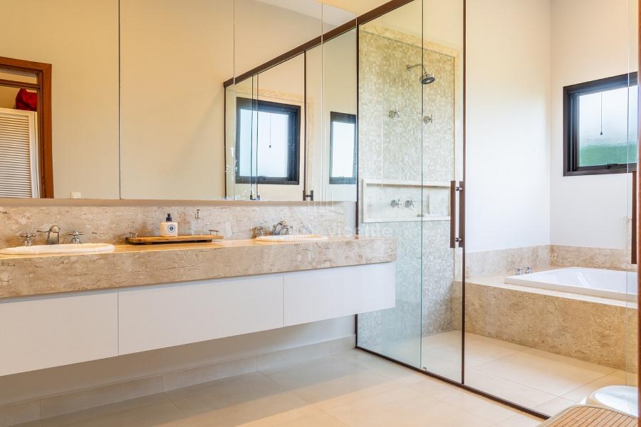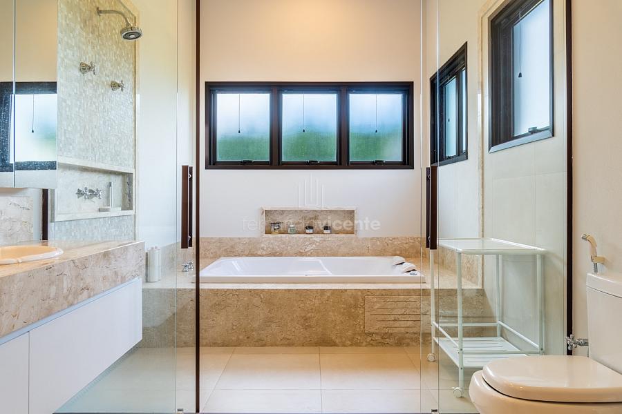 Na parte íntima, são 5 suítes completas (com dependência reversível), e a suíte master entrega o que se espera de um alto padrão verdadeiro: closet e hidromassagem para duas pessoas, com privacidade e conforto.