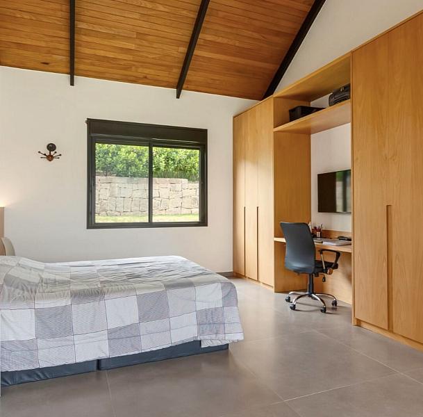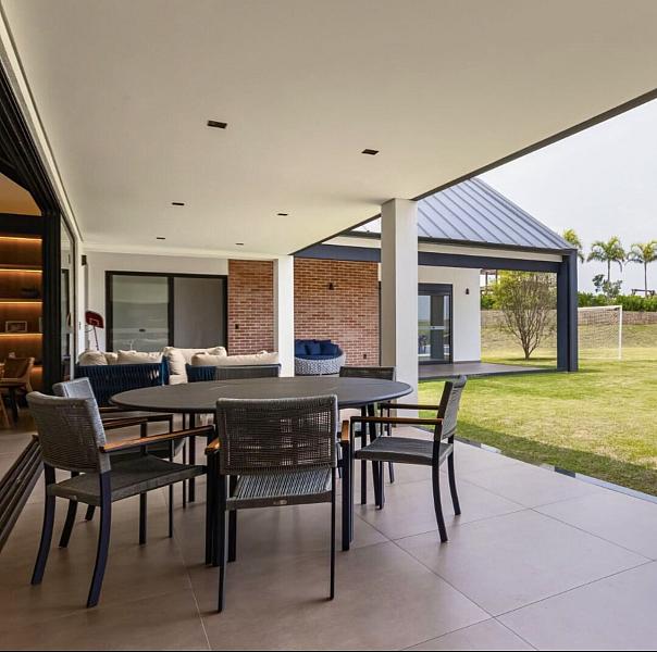 Esta residência combina o charme do estilo farmhouse com um design atualizado, criando um ambiente acolhedor e sofisticado. O projeto valoriza elementos rústicos reinterpretados com um toque contemporâneo, remetendo às antigas fazendas da região.