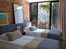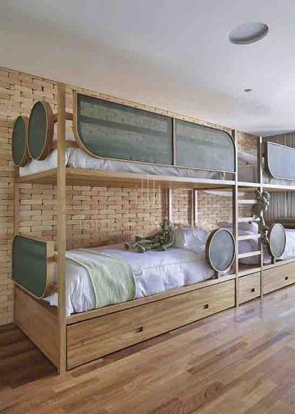 Os pisos em cimento queimado e madeira maciça reforçam a sensação de conforto e sofisticação em cada detalhe.