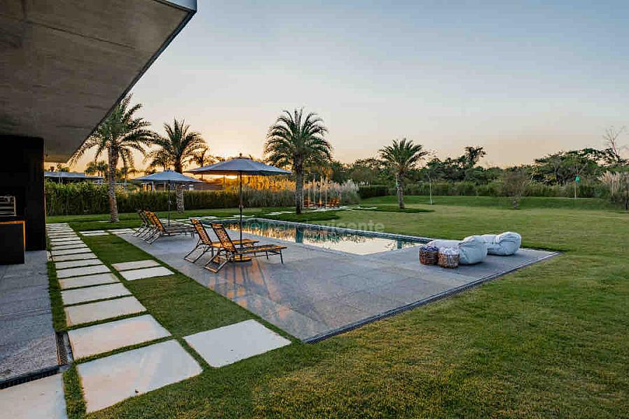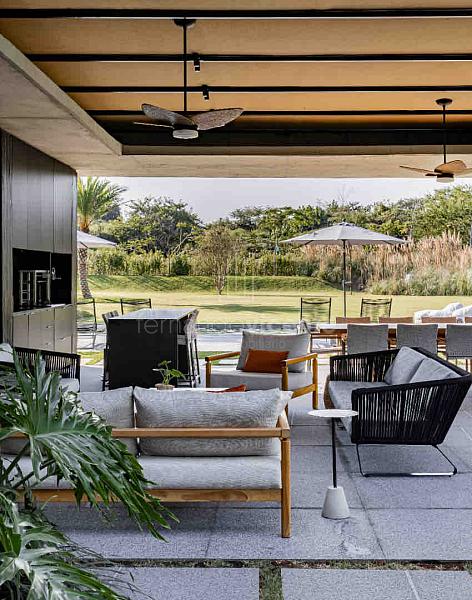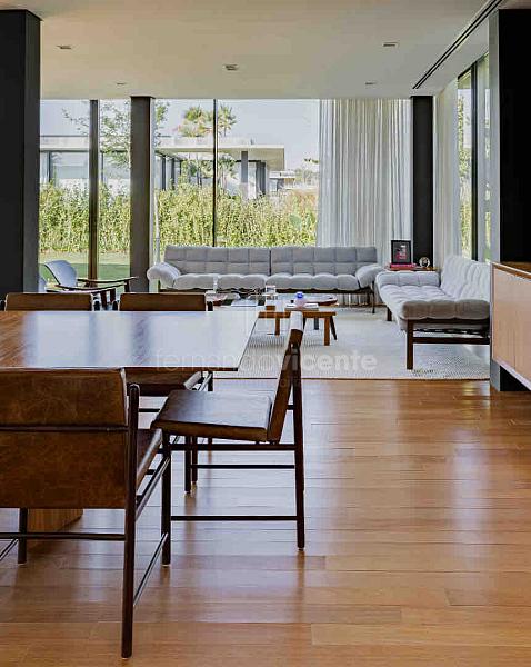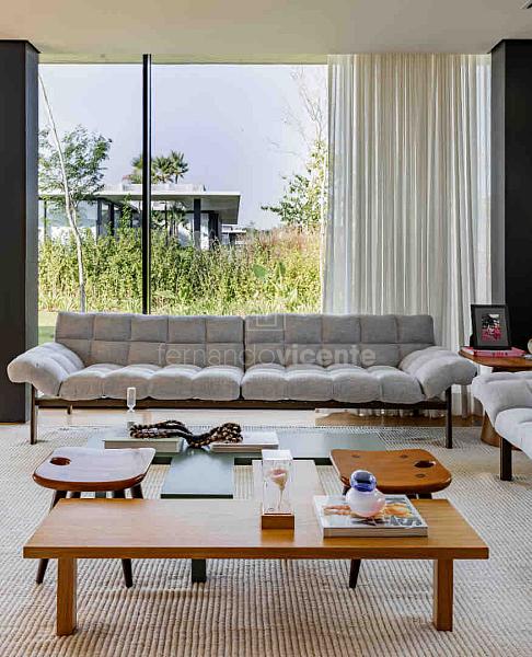 Descubra a Sport House, um refúgio contemporâneo projetado pelo renomado escritório Triptyque Arquitetura, onde o design impecável encontra a serenidade em meio à natureza. Situada em um generoso terreno de 3.200m² com 680m² de área construída, esta residência térrea encanta pela integração perfeita entre os ambientes, a decoração elegante com móveis atemporais e uma vista deslumbrante para o pôr do sol.