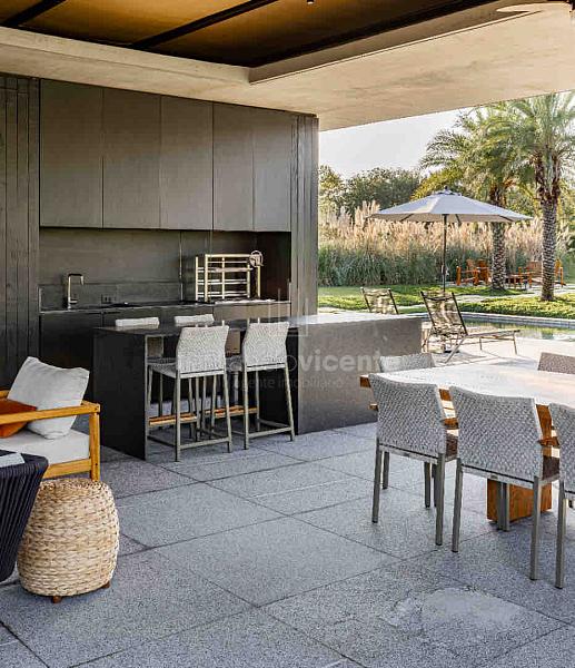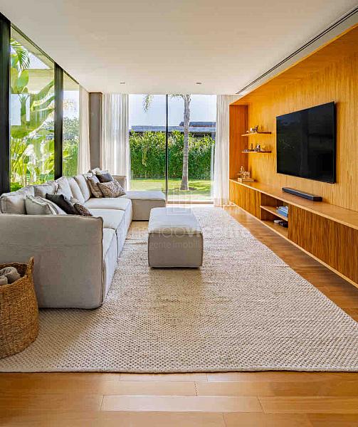 No coração da casa, o amplo living se conecta harmoniosamente ao home theater e à cozinha gourmet equipada com eletrodomésticos Gaggenau, proporcionando praticidade e estilo para receber e viver momentos inesquecíveis.