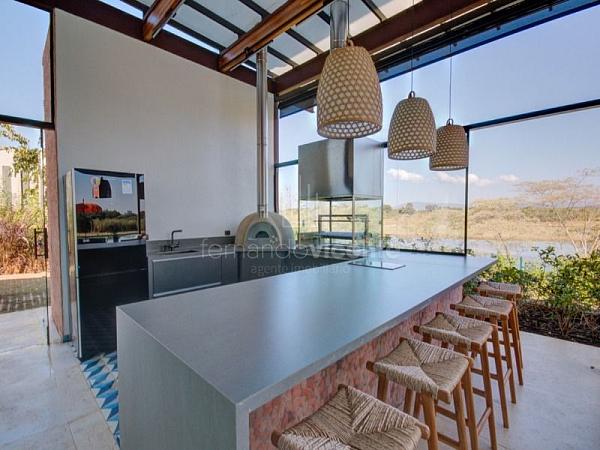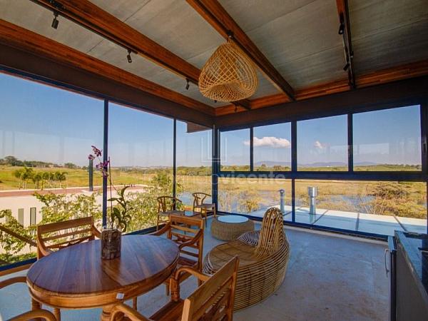 Casa à venda no Condomínio Fazenda Boa Vista, Porto Feliz - SP. Projeto de Arquitetura Nitsche Arquitetos e com paisagismo de Maria Helena Cruz. Construída em 2020, conta com uma vista para o lago e o pôr do sol inesquecível, com mata nativa na frente e sem nada entre a casa e a vista. A casa é térrea e dividida em blocos que são interligados por um jardim com paisagismo e um lago ornamental, a piscina e o telhado verde tem uma linda vista para o lago, onde é possível apreciar um belo por do sol. A casa com fino acabamento e materiais importados, são seis suítes, duas salas de estar, sala de jantar, home theater, área gourmet integrada, piscina aquecida e muito mais. Localizada próxima ao Golf Clubhouse II, Parque dos Esportes que tem academia de última geração, piscina coberta com raia, quadras de tênis e circuito ininterrupto de Triathlon.