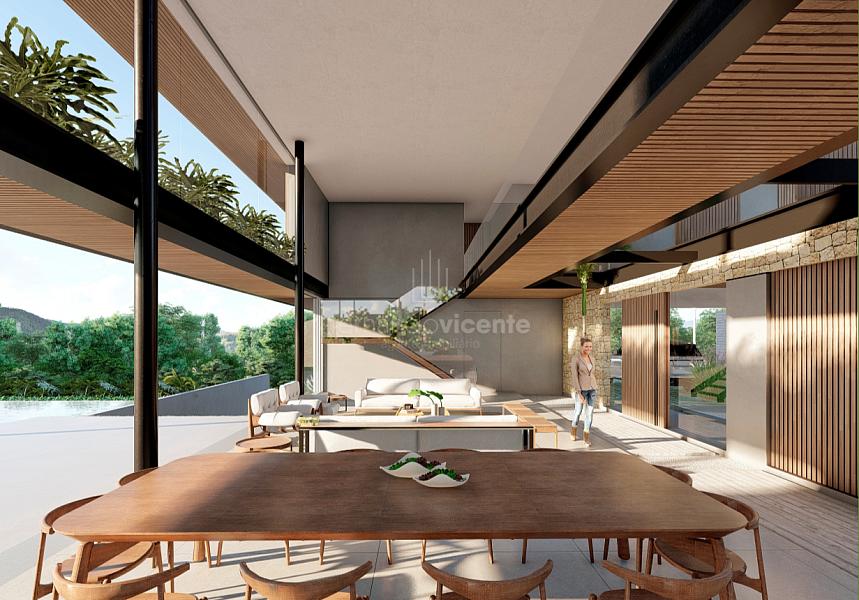 • Área gourmet integrada à varanda e ao deck com piscina de borda infinita e spa.