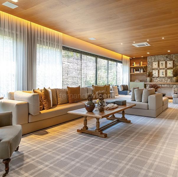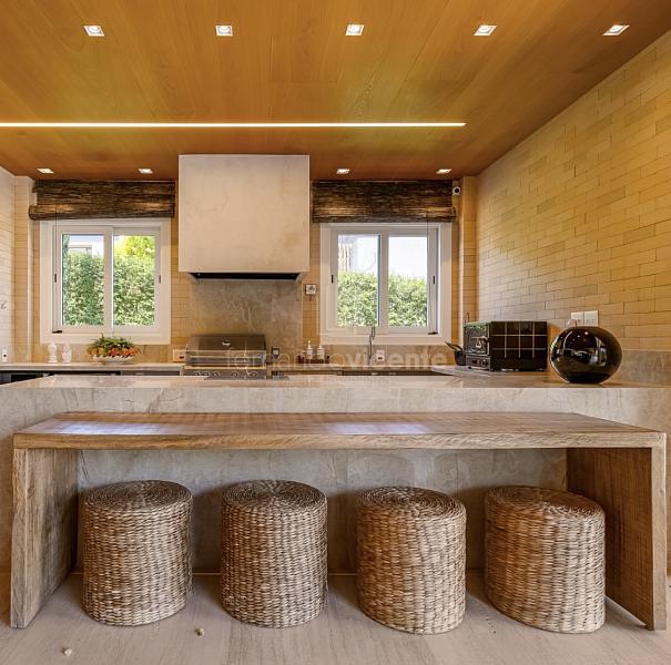 Com 6 suítes amplas, a casa oferece também 2 home theaters, sala de estar, escritório e cozinha integrada a uma área gourmet completa, ideal para receber com conforto e elegância.