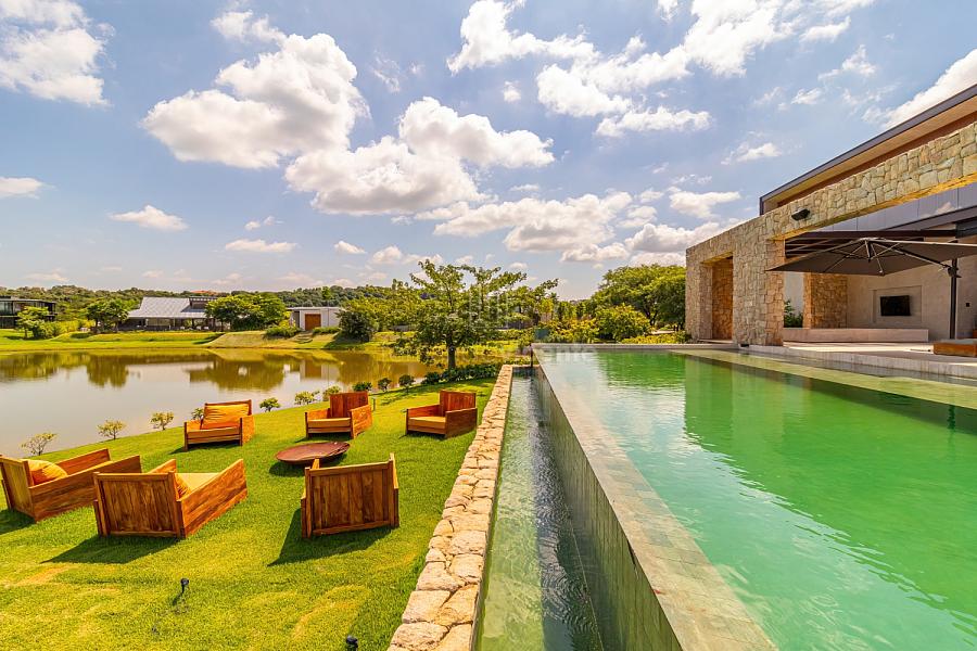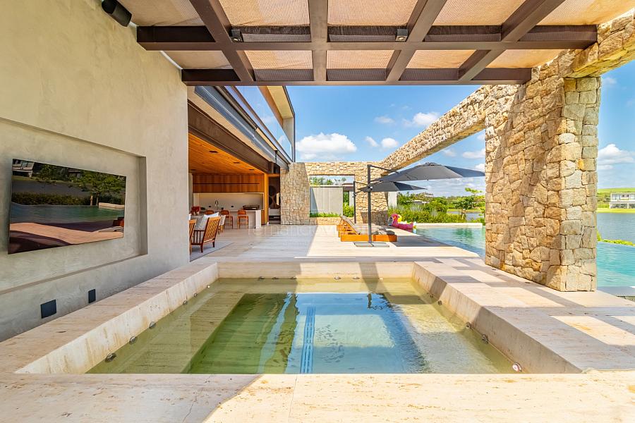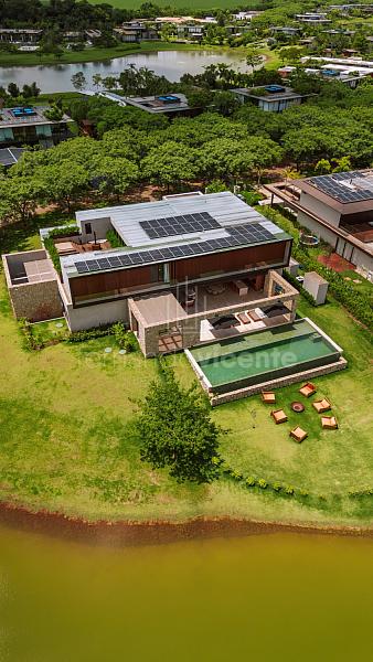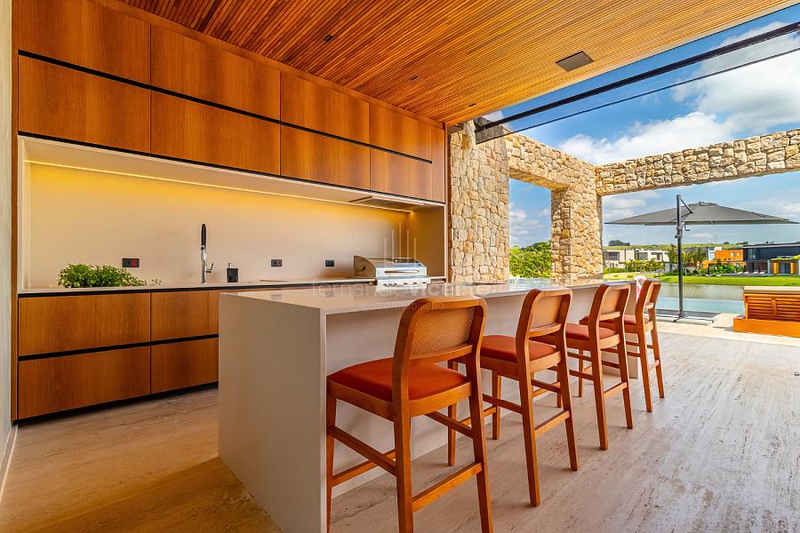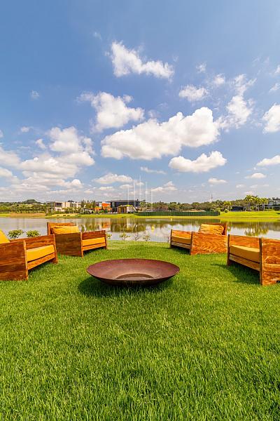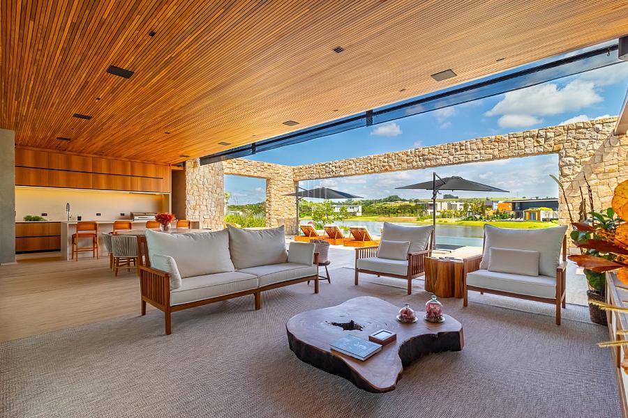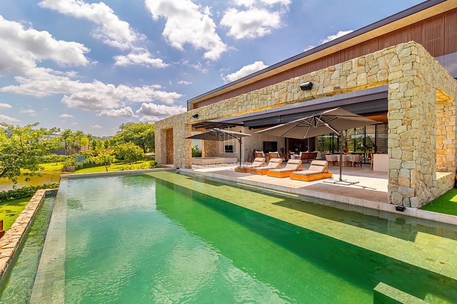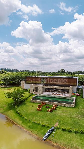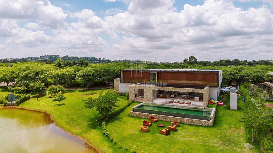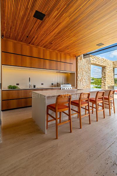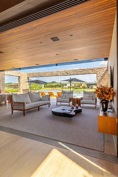 Para os amantes da boa vida, a casa oferece adega climatizada, SPA e uma piscina aquecida — tudo isso emoldurado por uma vista espetacular para o lago do Triathlon.