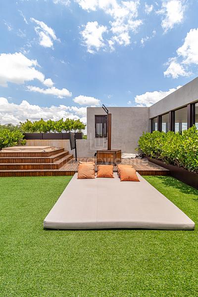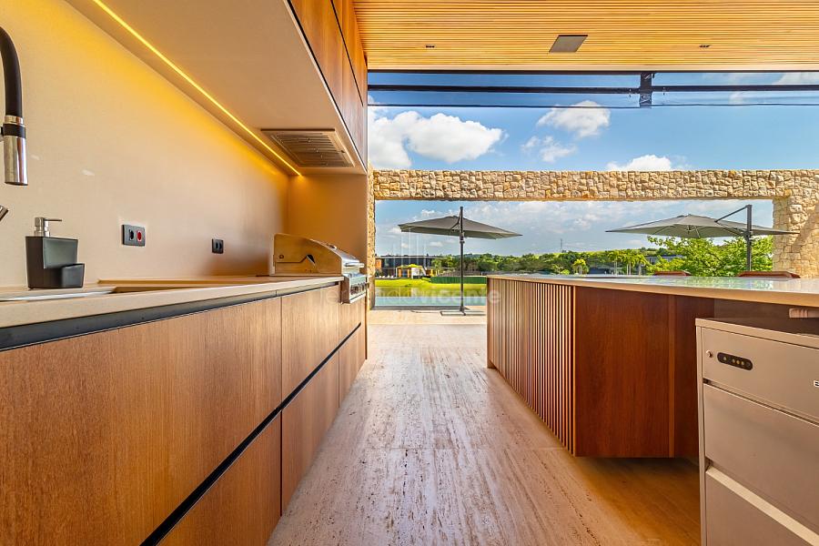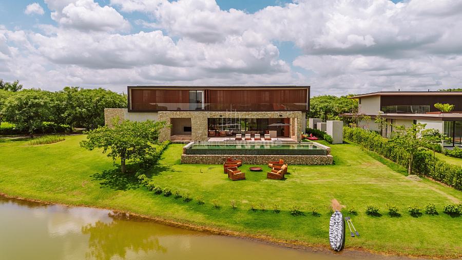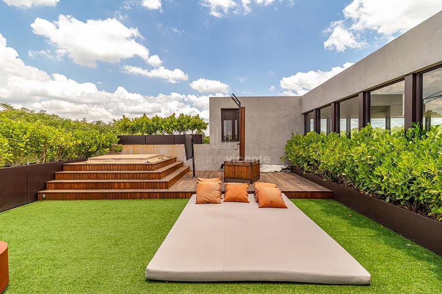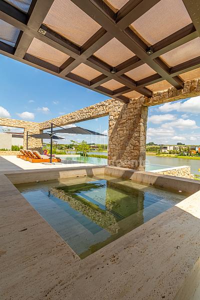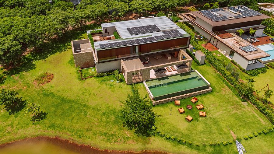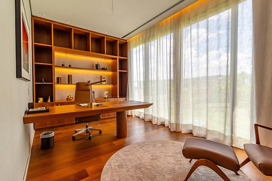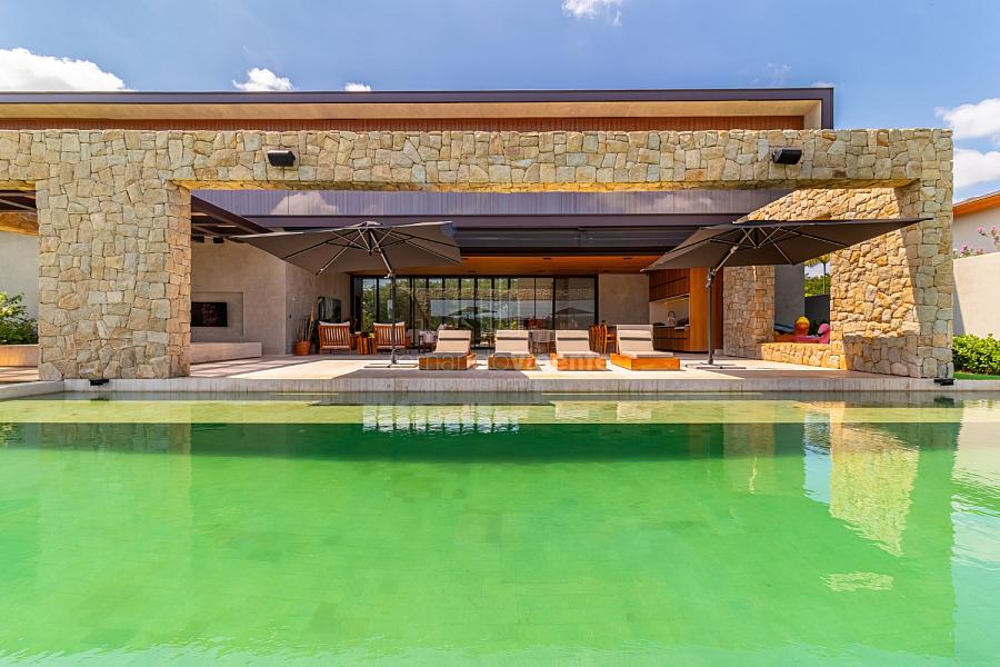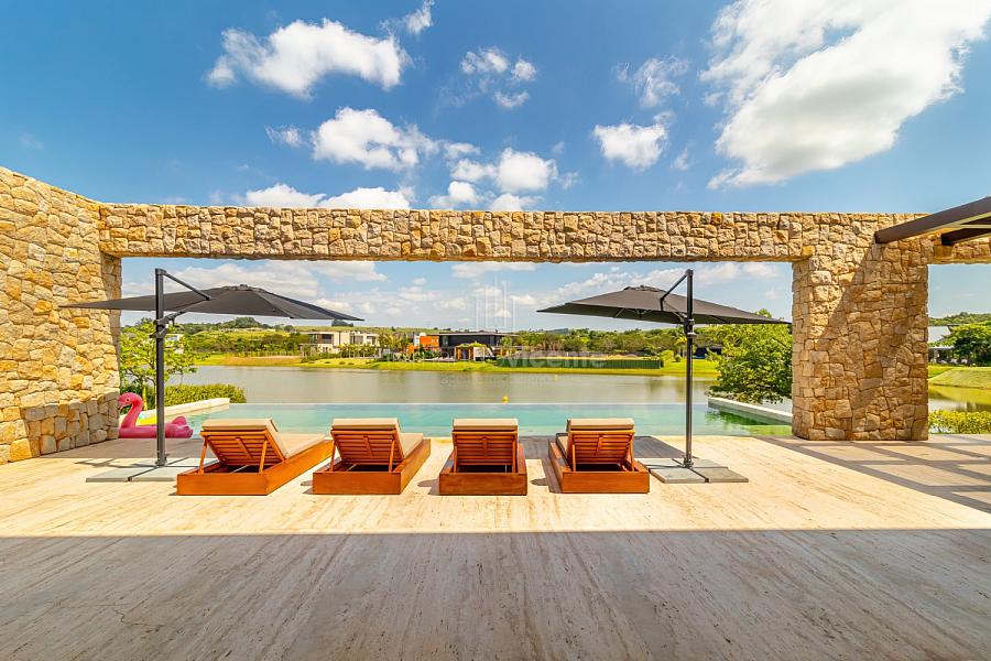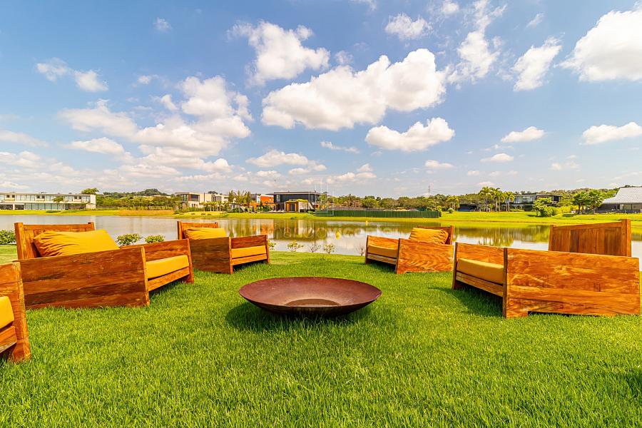 Para os amantes da boa vida, a casa oferece adega climatizada, SPA e uma piscina aquecida — tudo isso emoldurado por uma vista espetacular para o lago do Triathlon.