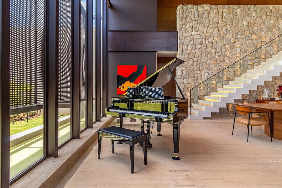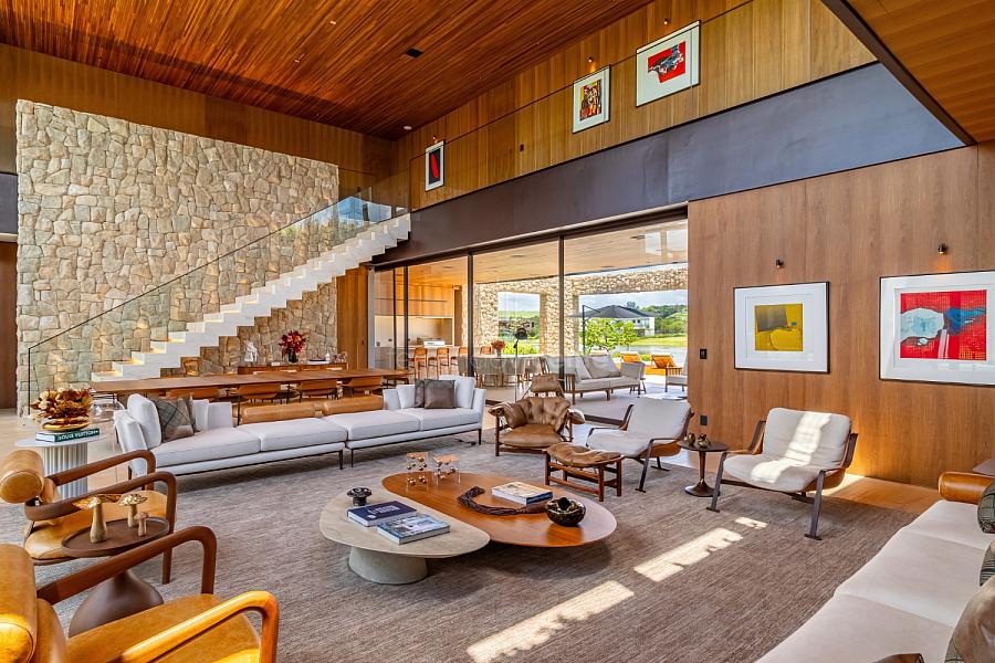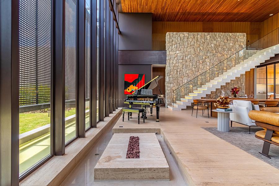 São seis suítes cuidadosamente planejadas para garantir total privacidade e aconchego, com destaque para a suíte master, que eleva o conceito de luxo e bem-estar. O living principal conta com uma lareira elegante, criando o cenário perfeito para momentos inesquecíveis ao lado da família e amigos.