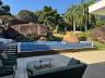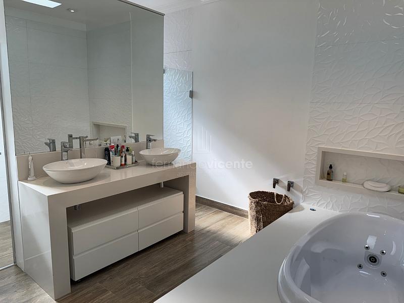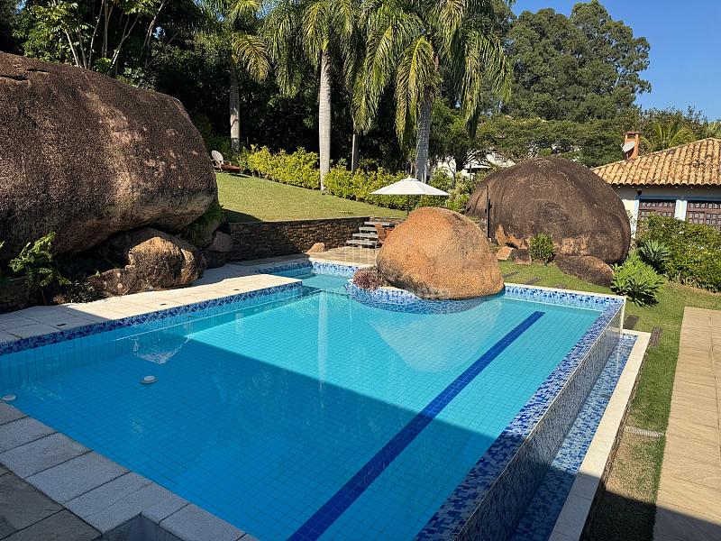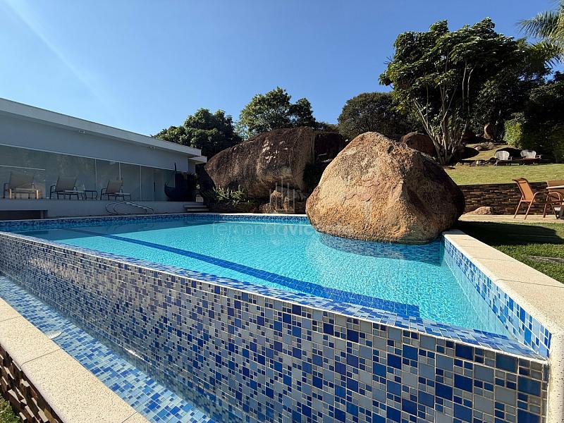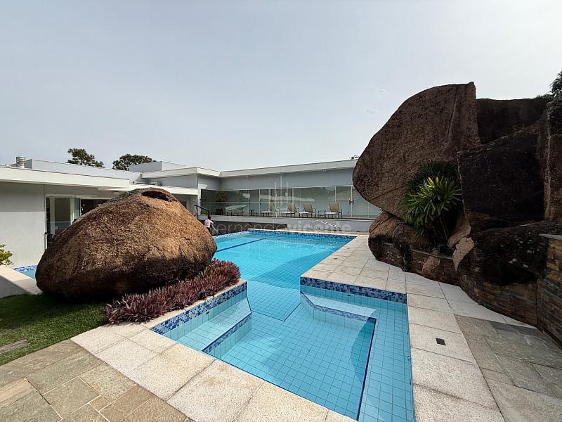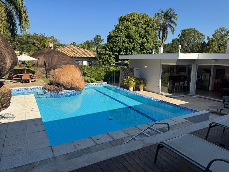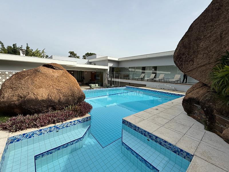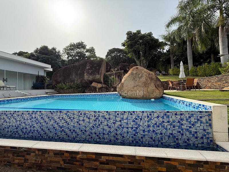 Esta casa oferece ainda uma cozinha de apoio, um amplo depósito, quarto de empregado e uma área de serviço com acesso independente. Para sua comodidade e segurança, a propriedade é equipada com ar-condicionado em todos os ambientes, sistemas de aquecimento solar e elétrico, câmeras de segurança e automação com acionamento remoto para boiler (capacidade de 800L), aquecimento da piscina, alarme/câmeras de segurança e diversas iluminações externas/internas. A casa conta ainda com uma capacidade de caixa d'água de 3.500 litros.