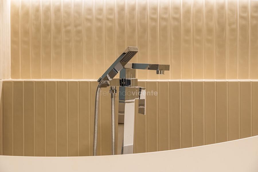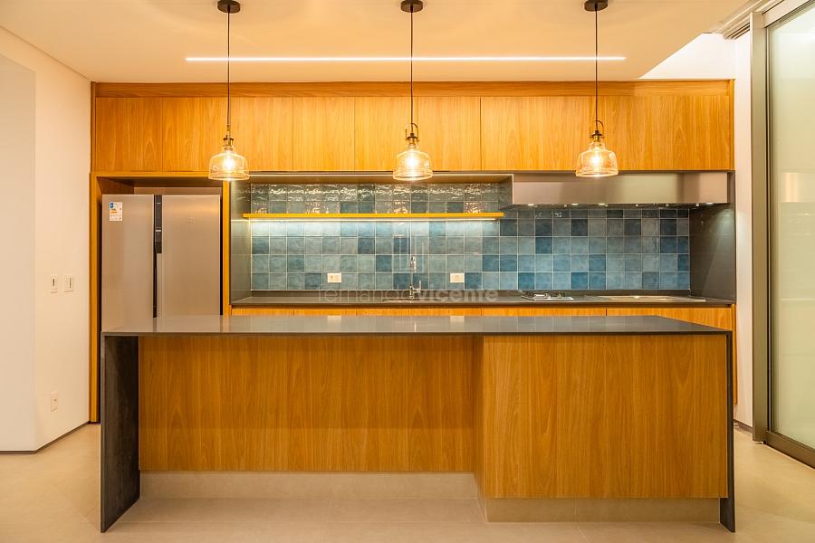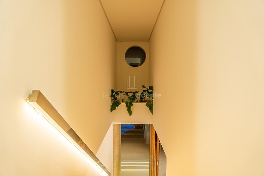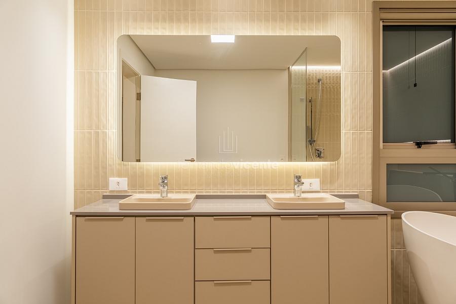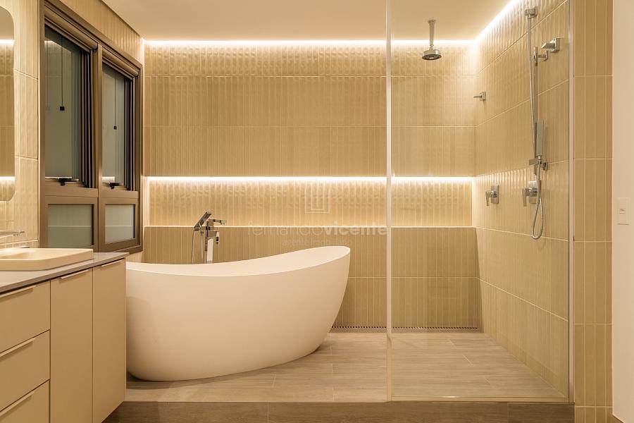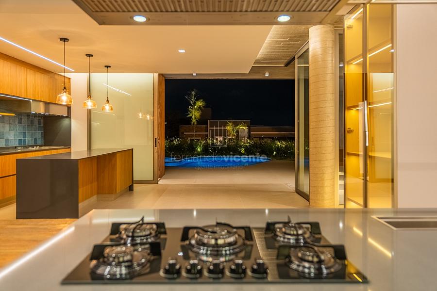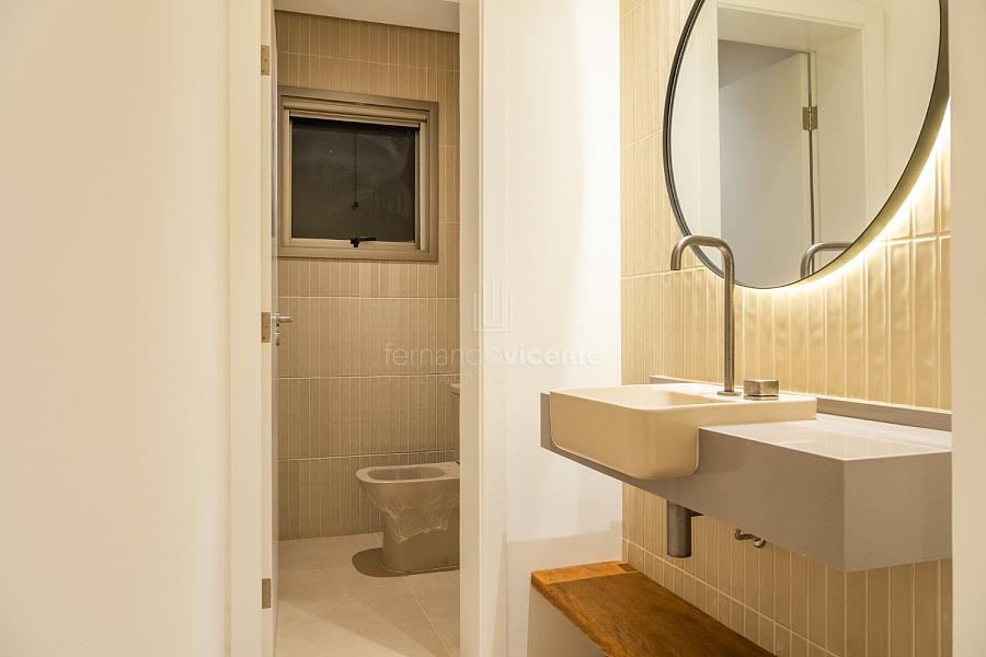 Ambientes generosos banhados por luz natural priorizam conforto máximo. A área social impressiona com living de pé-direito duplo e lareira contemporânea embutida, ideal para noites acolhedoras. A cozinha gourmet, com ilha em madeira e bancadas em pedra, flui para a varanda externa, fomentando convívios e celebrações. Nos andares superiores, quartos com piso em madeira e acabamentos nobres levam à suíte master spa privativa: closet amplo, varanda privativa e banheiro spa com banheira orgânica, iluminação embutida e revestimentos texturizados premium – um oásis de bem-estar diário.
