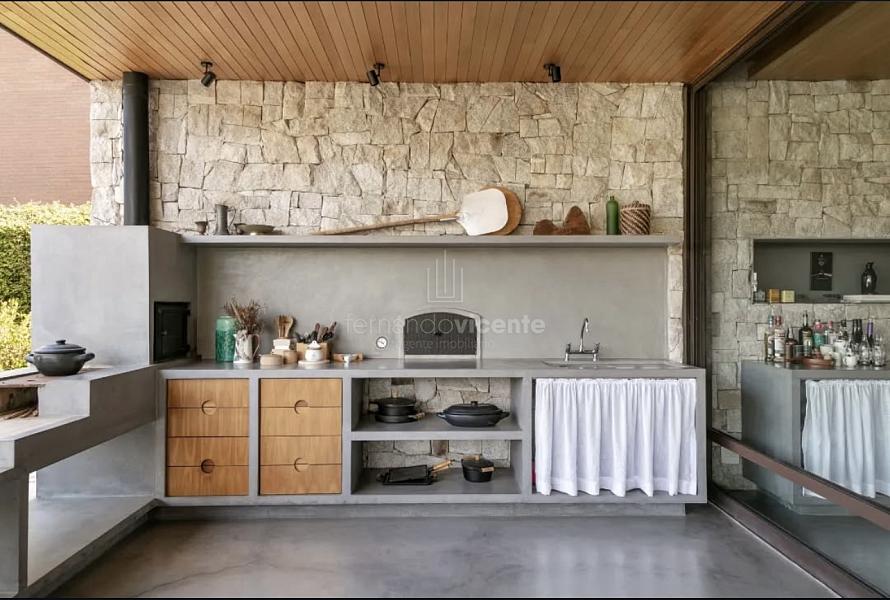 São 420 m² de área construída distribuídos em dois pavimentos. O living integra estar e jantar com fluidez, além de contar com uma sala de TV privativa e uma cozinha completa. A casa dispõe de 4 suítes espaçosas, lavabo, adega e armários planejados em todos os ambientes.