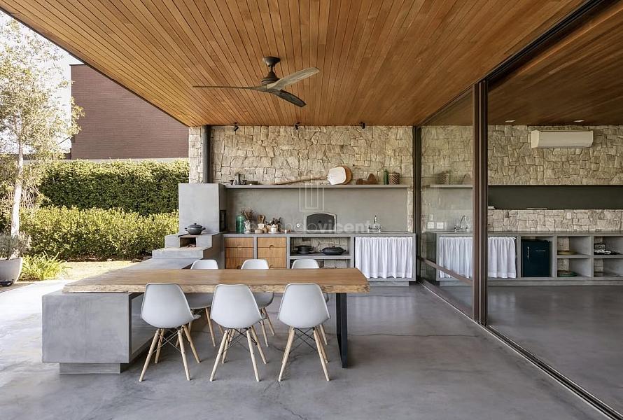 Na área externa, um espaço gourmet convida a momentos de lazer ao lado da piscina e do amplo quintal, criando um refúgio perfeito para desfrutar do melhor da Fazenda Boa Vista.