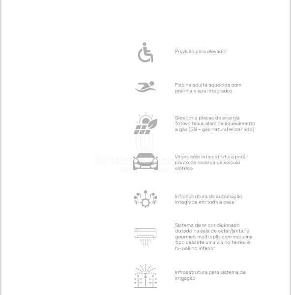 • Sistema de ar condicionado dutado nas salas de estar/jantar e gourmet; multi split com cassete no térreo e hi-wall no pavimento inferior