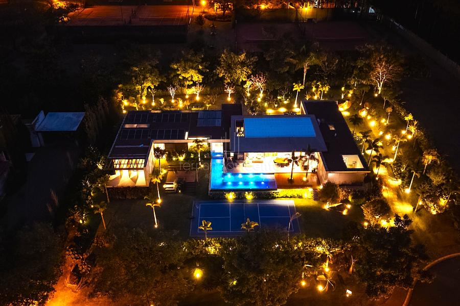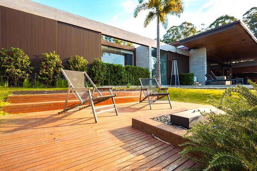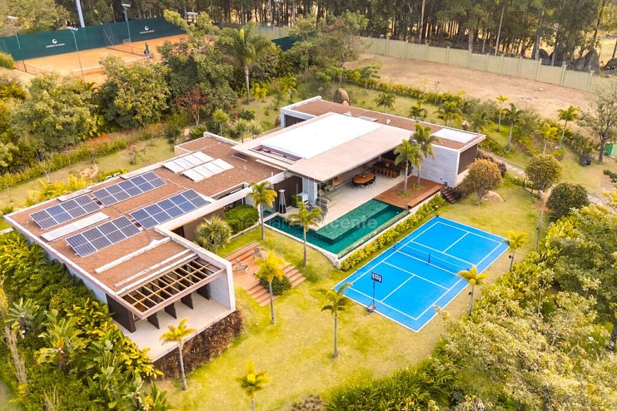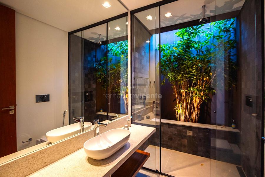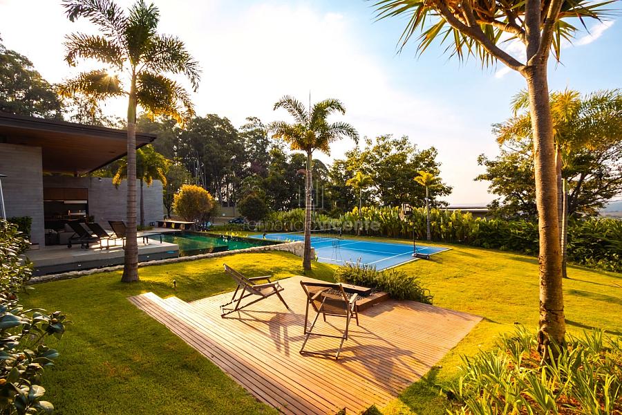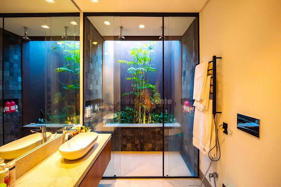 • Paisagismo Assinado: O paisagismo cuidadoso emoldura a residência, transformando cada janela em uma vista exuberante.