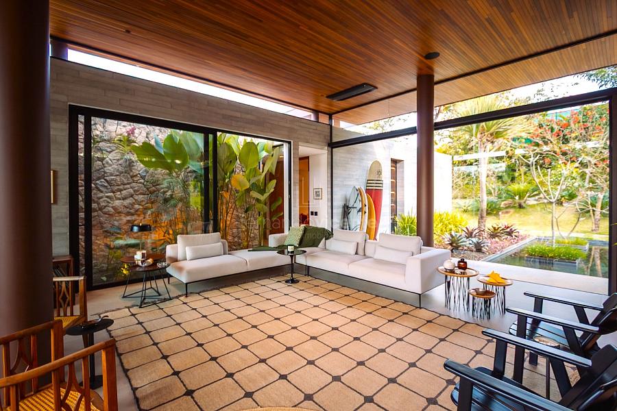 Esta residência de alto padrão é uma obra-prima do arquiteto Lucas Padovani, um ícone da arquitetura contemporânea. Em um terreno exuberante de 2.800 m², a casa de 650 m² foi meticulosamente projetada para quem valoriza a integração, a luz natural e a conexão com a natureza.