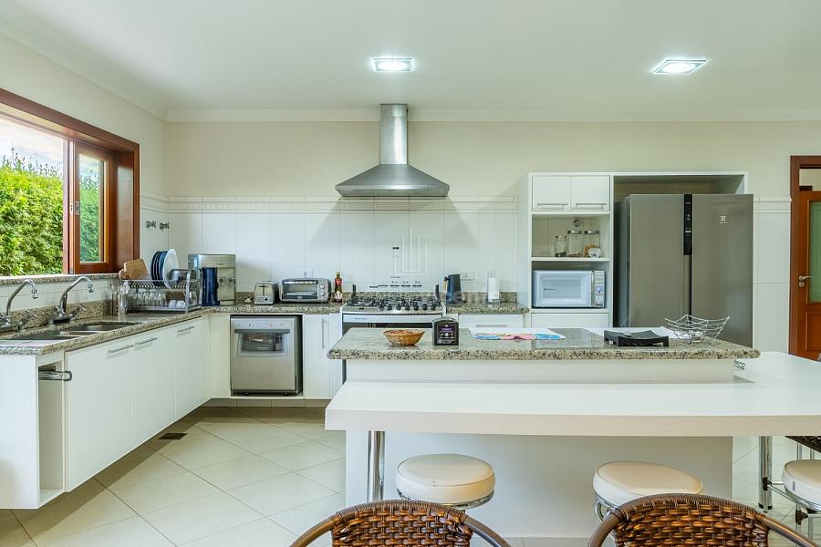 A cozinha, com móveis planejados e despensa, é funcional e pronta para o dia a dia, sem abrir mão de estilo. E para quem gosta de viver a casa também do lado de fora, o lazer é um capítulo à parte: piscina, campo de futebol e um espaço gourmet com churrasqueira que convida a almoços longos e encontros ao ar livre. Para completar, um SPA/hidromassagem para momentos de relaxamento no seu próprio tempo.