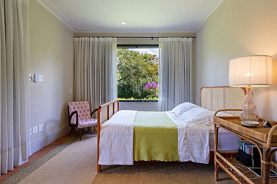 Casa em condomínio de campo exclusivo, com projeto assinado por Antônio Scarpa. O living amplo e iluminado integra-se à área social, que oferece piscina, espaço gourmet e um generoso jardim com vista para o lago, proporcionando conforto e lazer. Perfeita para desfrutar momentos únicos no campo.