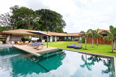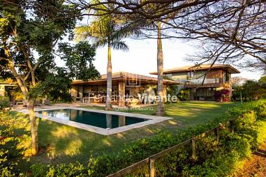 A planta é funcional e bem distribuída: são 5 suítes avarandadas, incluindo uma suíte master com closet e vista para o pátio interno. A área gourmet é completa, com cozinha de apoio, churrasqueira sob pérgola metálica, sauna, vestiário e adega. O lazer ainda conta com uma ampla piscina com raia, prainha, deck em madeira e jacuzzi. Tudo isso rodeado por um paisagismo impecável que reforça a sensação de estar em um verdadeiro refúgio no interior.