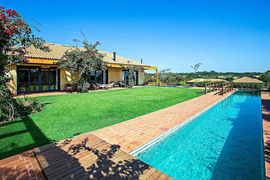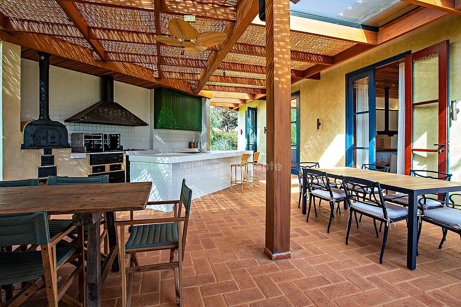 Com arquitetura acolhedora e ambientes bem distribuídos, esta casa foi projetada para oferecer conforto e momentos inesquecíveis no campo. Dispõe de um living amplo integrado à varanda, home theater aconchegante, sala de jogos com lareira e uma charmosa sala de jantar com fogão à lenha. A cozinha é espaçosa e funcional, e a área de serviço conta com lavabo e dependência para funcionários.
