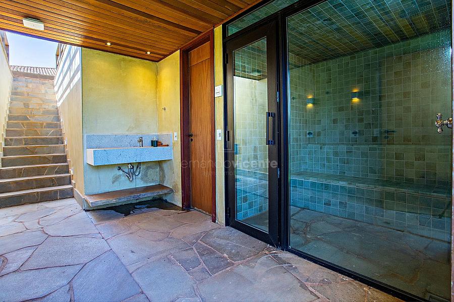 Na área íntima, são cinco suítes, incluindo uma suíte máster com escritório, garantindo privacidade e praticidade. O lazer é um destaque à parte: espaço gourmet completo, piscina, spa, raia, sauna e vestiário. A residência ainda conta com garagem coberta e descoberta, além de depósito.