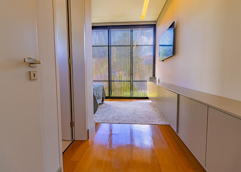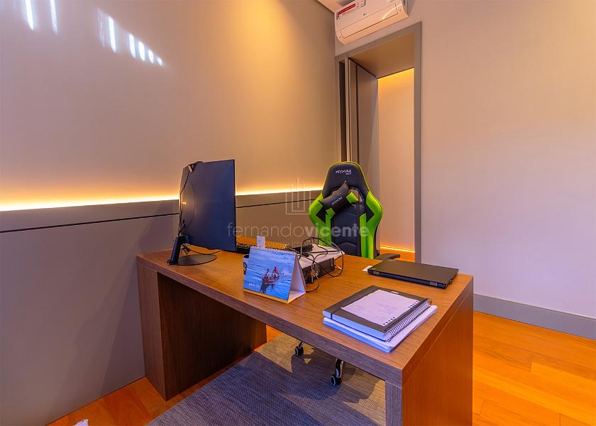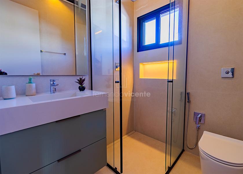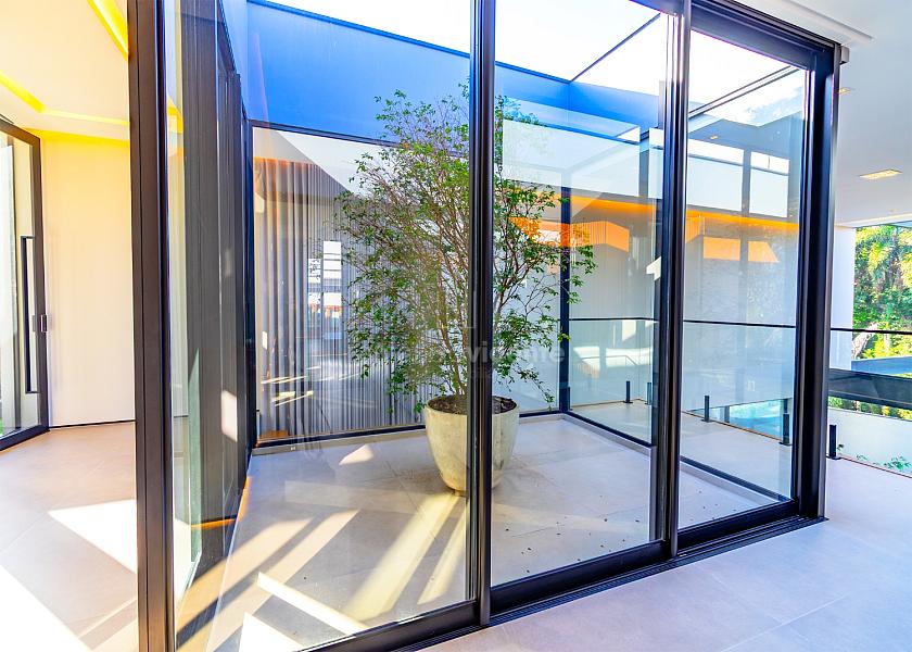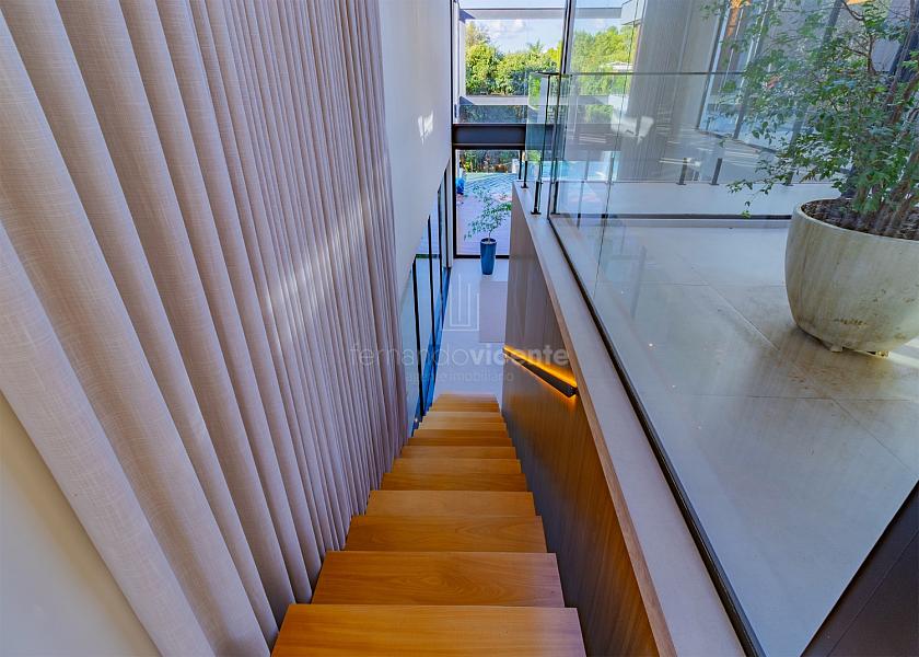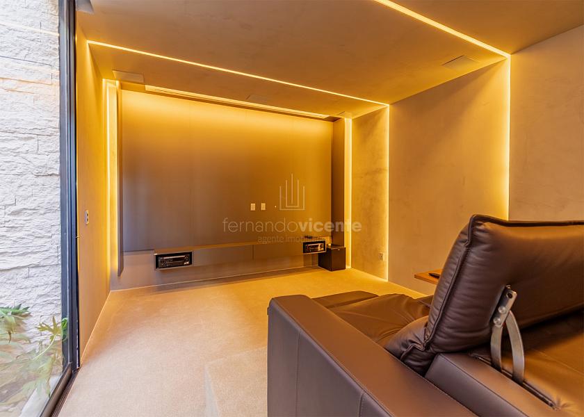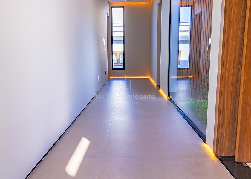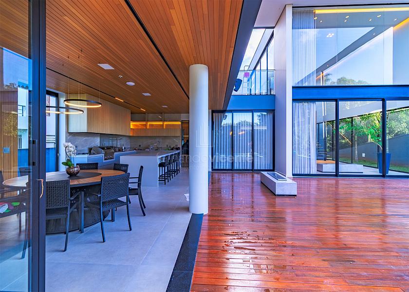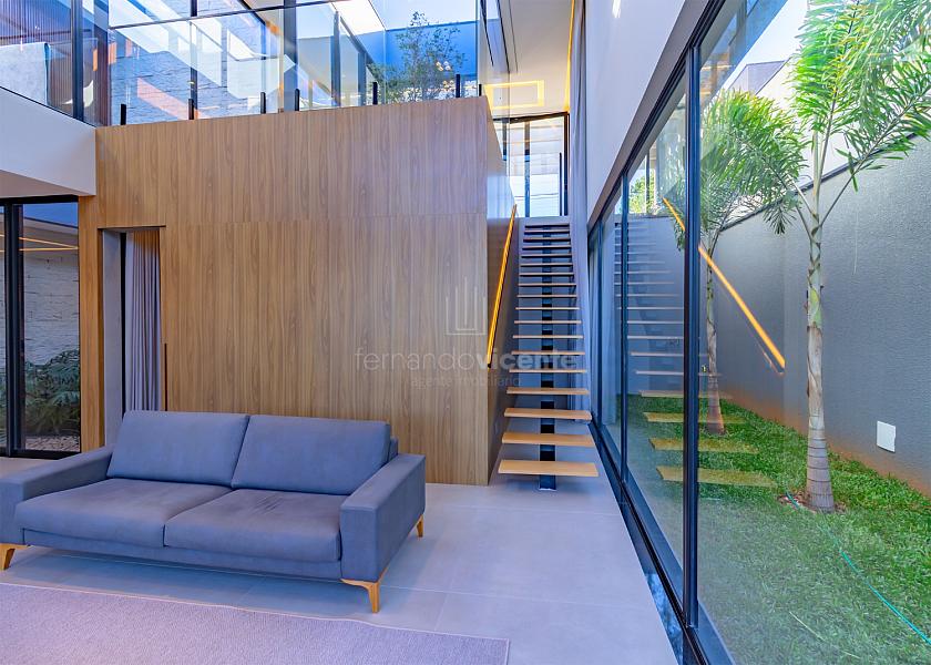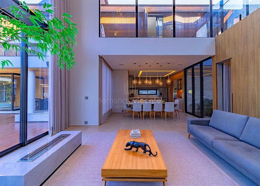 Seu interior se destaca pela arquitetura imponente e pelo design funcional. As 4 suítes espaçosas foram pensadas para o máximo de privacidade e bem-estar, complementadas por acabamentos refinados em todos os ambientes. A área social, com seu pé-direito alto e abundante iluminação natural, oferece salas amplas e integradas, perfeitas para o convívio.