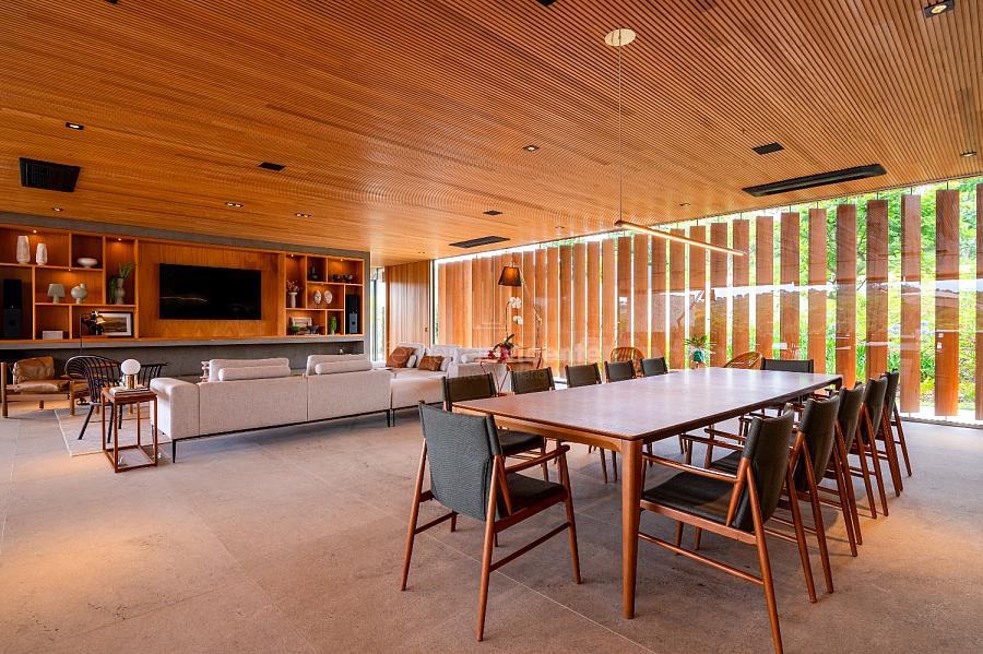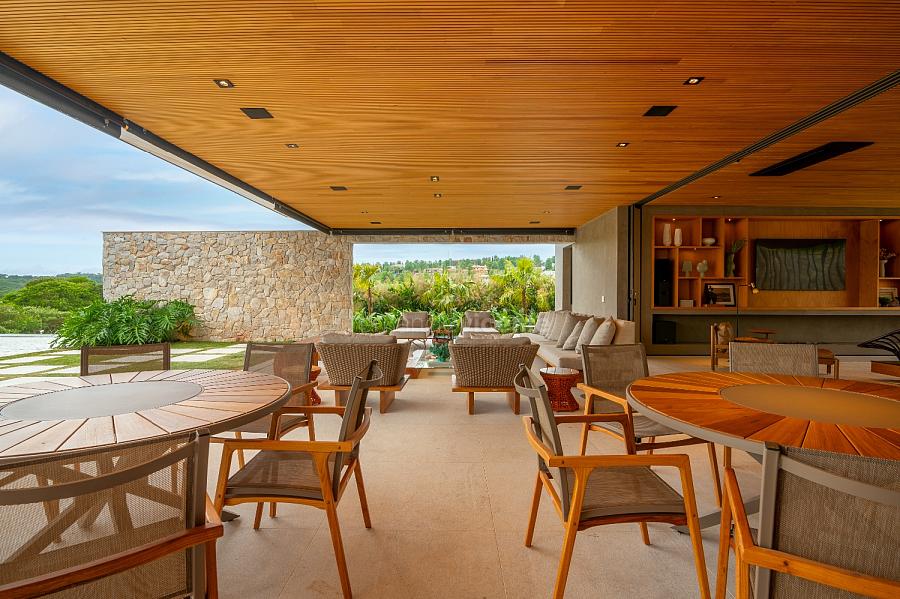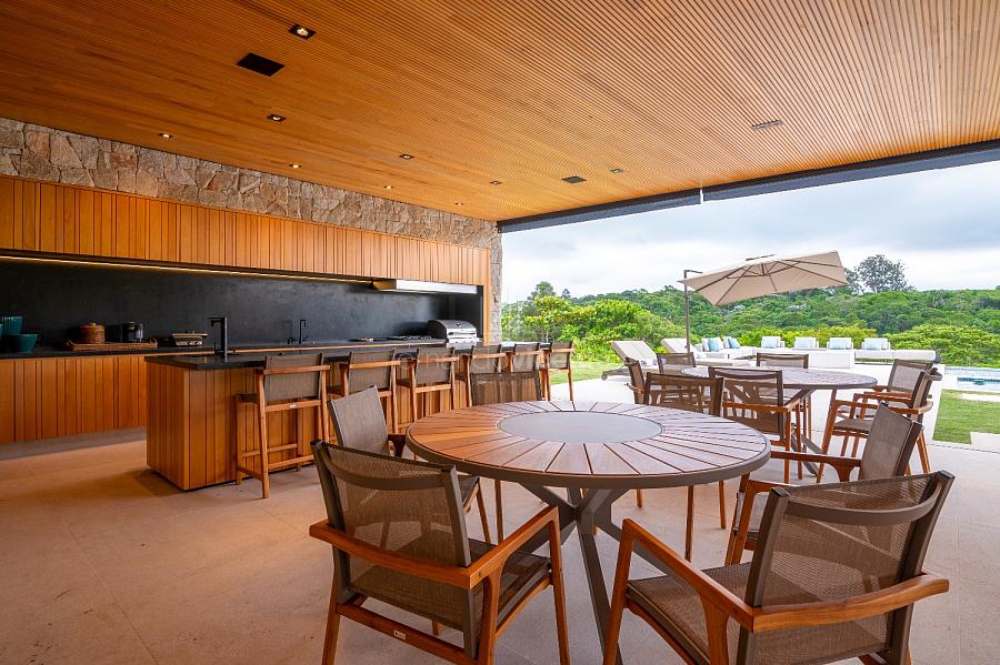 • Sala de Jantar e Estar Integradas: Grandes portas deslizantes que conectam os ambientes internos à área externa, trazendo sofisticação e praticidade.