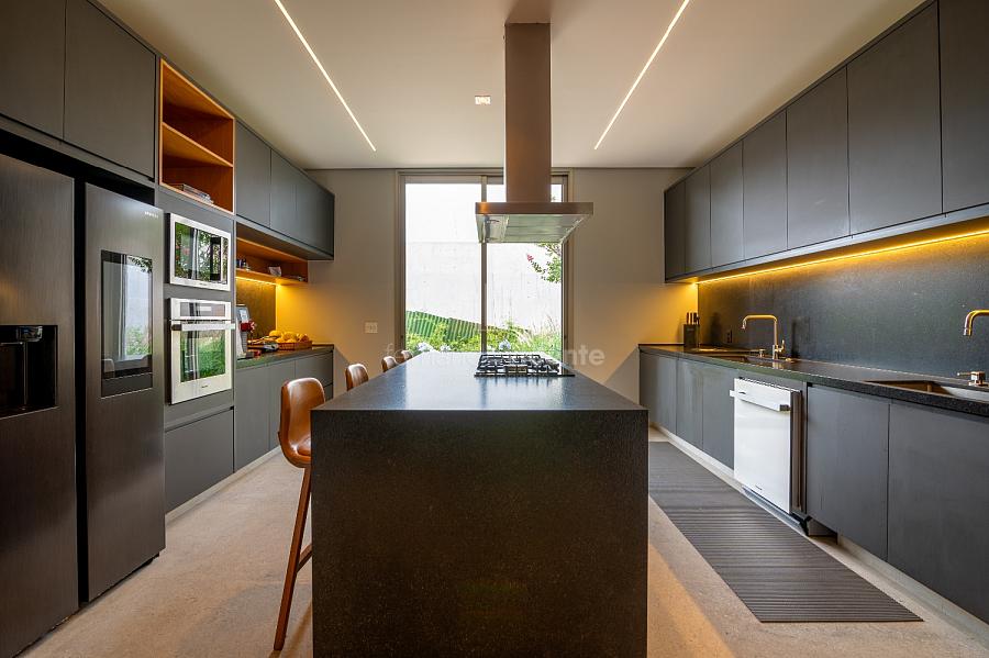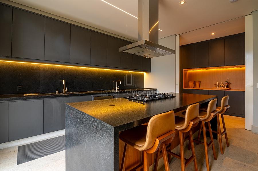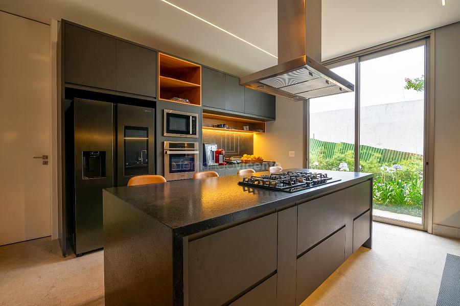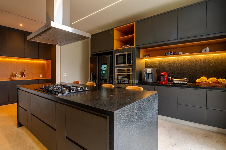 • Cozinha Moderna: Totalmente equipada com eletrodomésticos de alto padrão, ilha com cooktop e despensa.