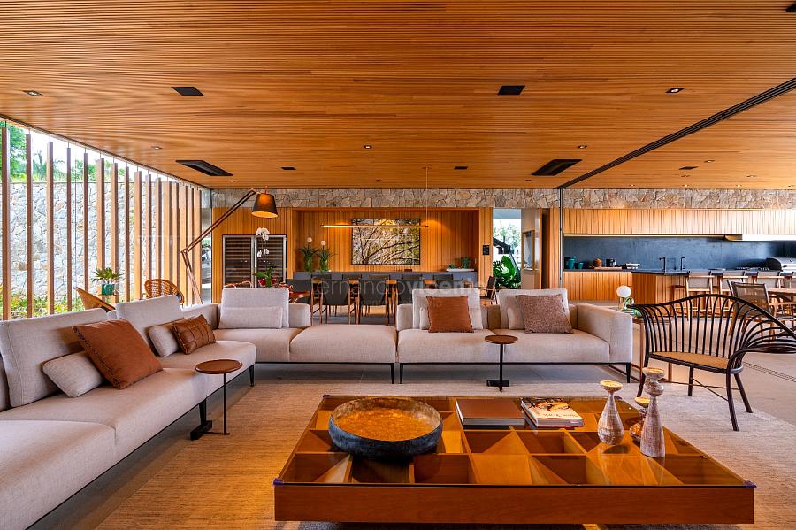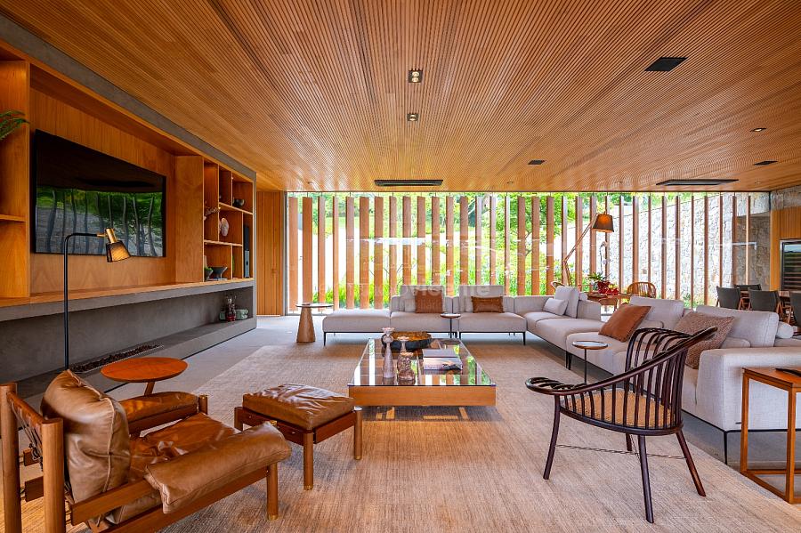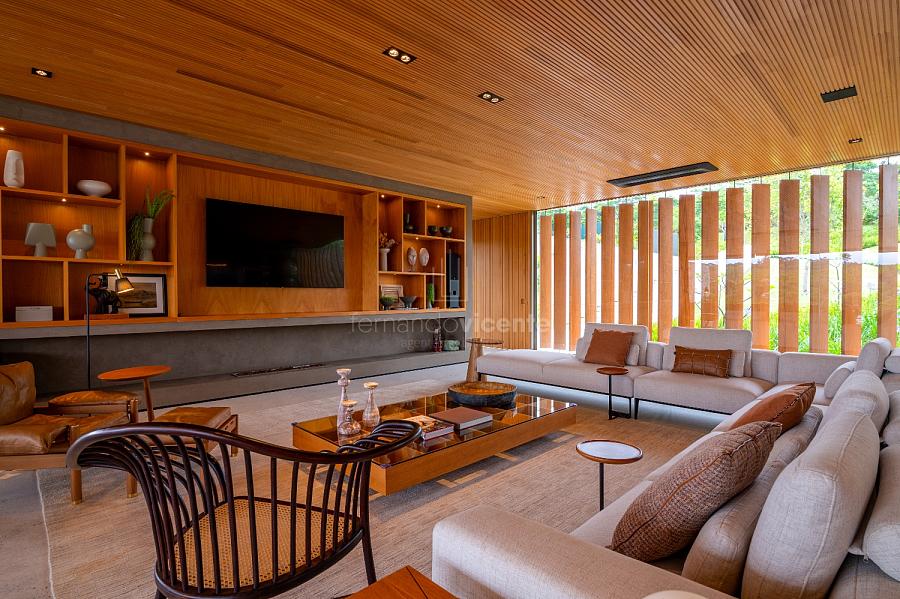 • Living com Lareira: Amplo e banhado por luz natural, com vista para um belíssimo jardim interno.
