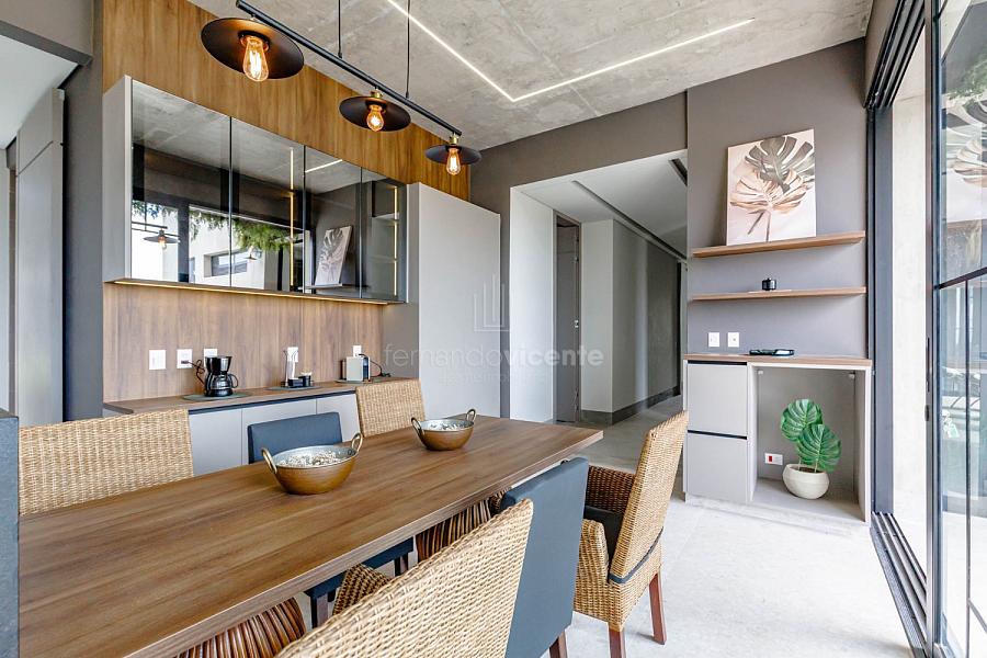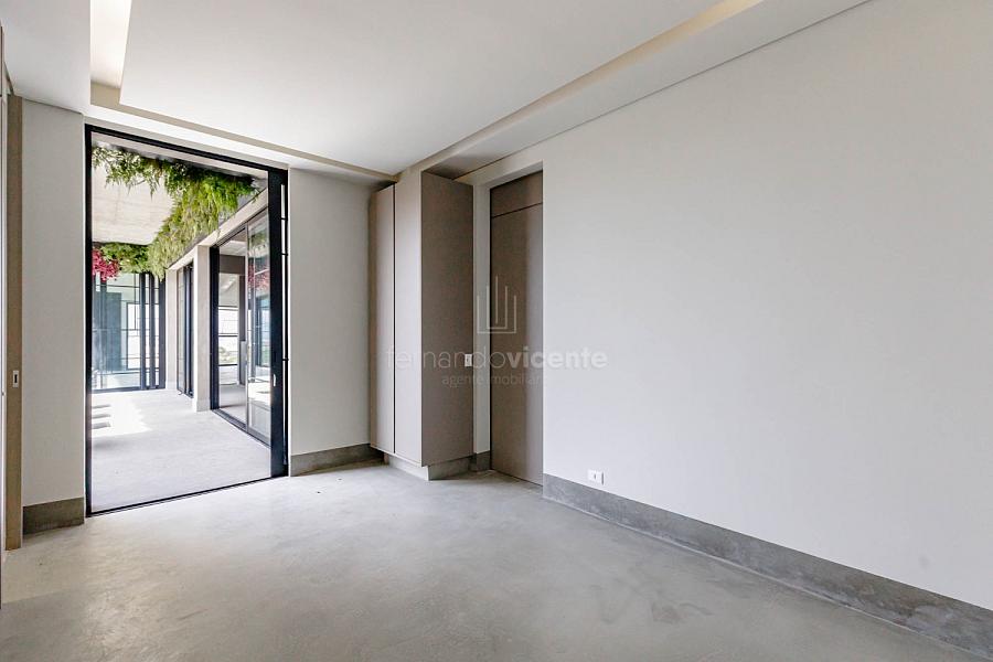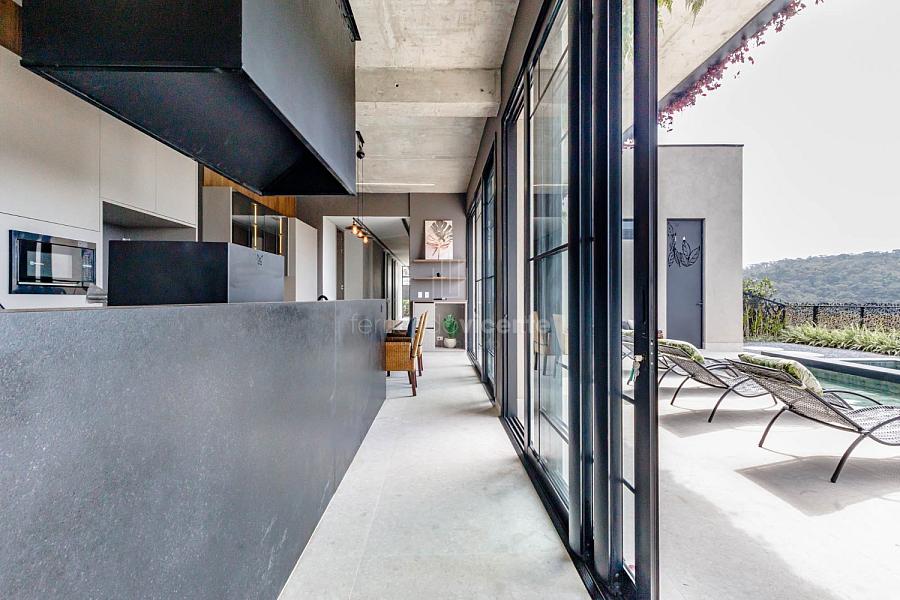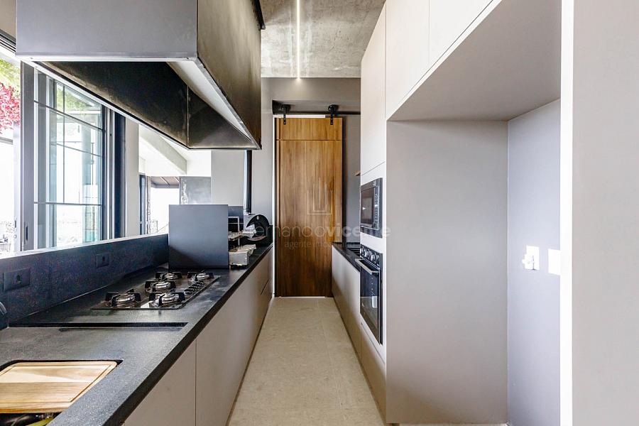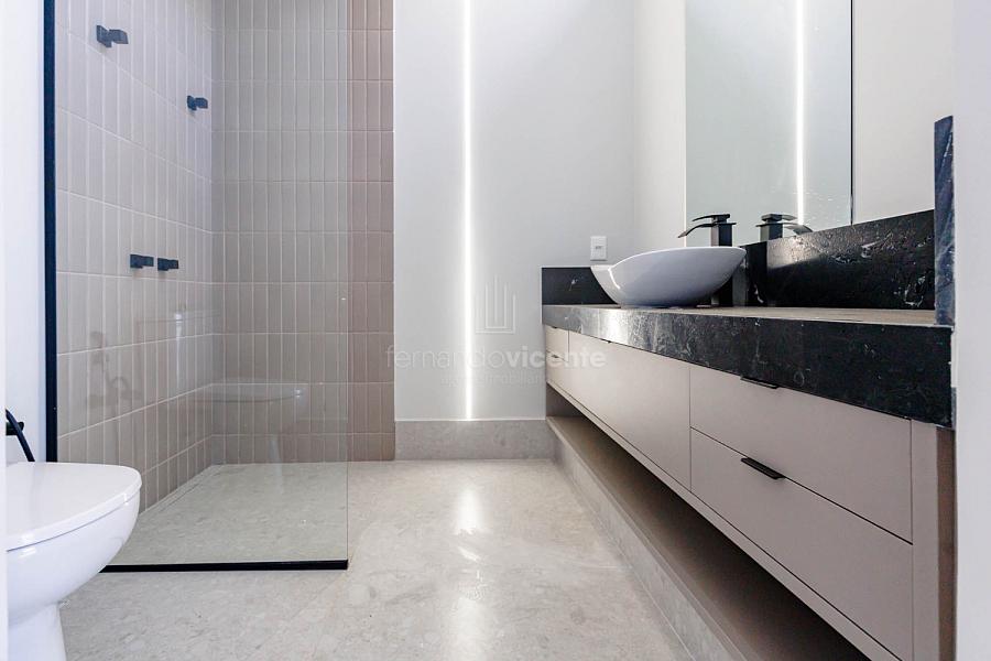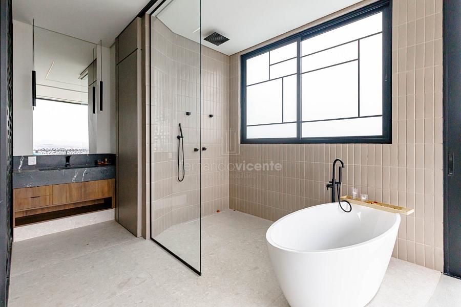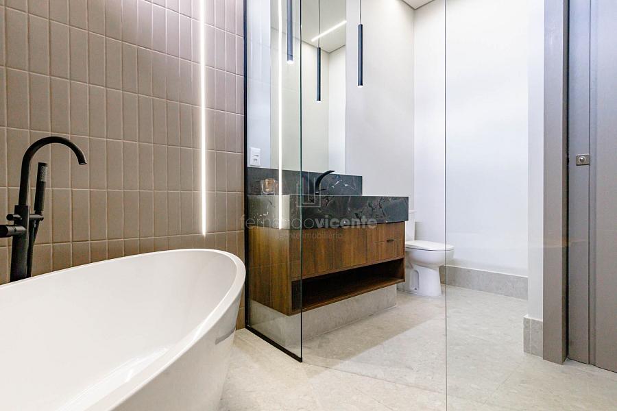• Acabamentos Premium: Marcenaria completa de altíssimo padrão, incluindo painéis de madeira e armários planejados com vidro espelhado na cozinha, bar e em todas as suítes.