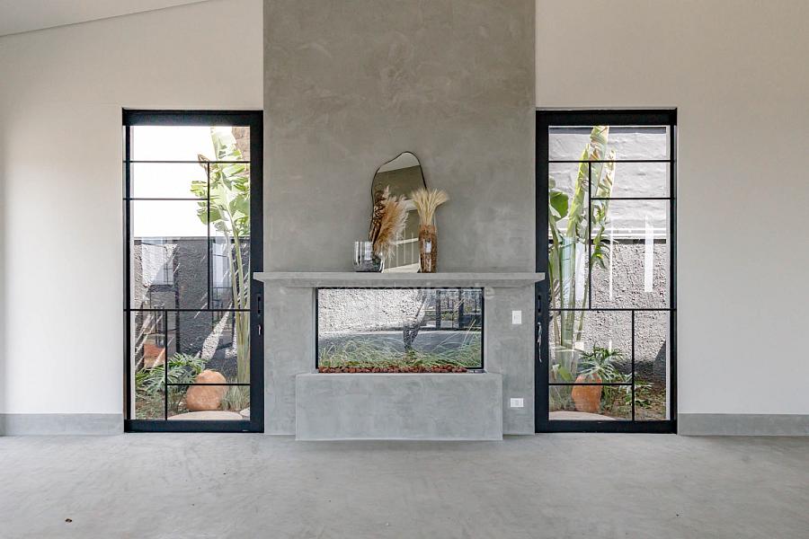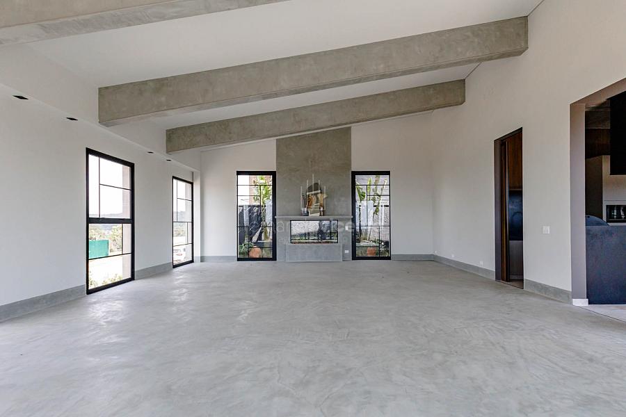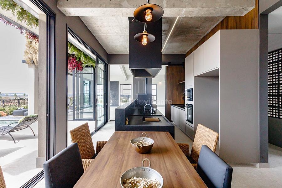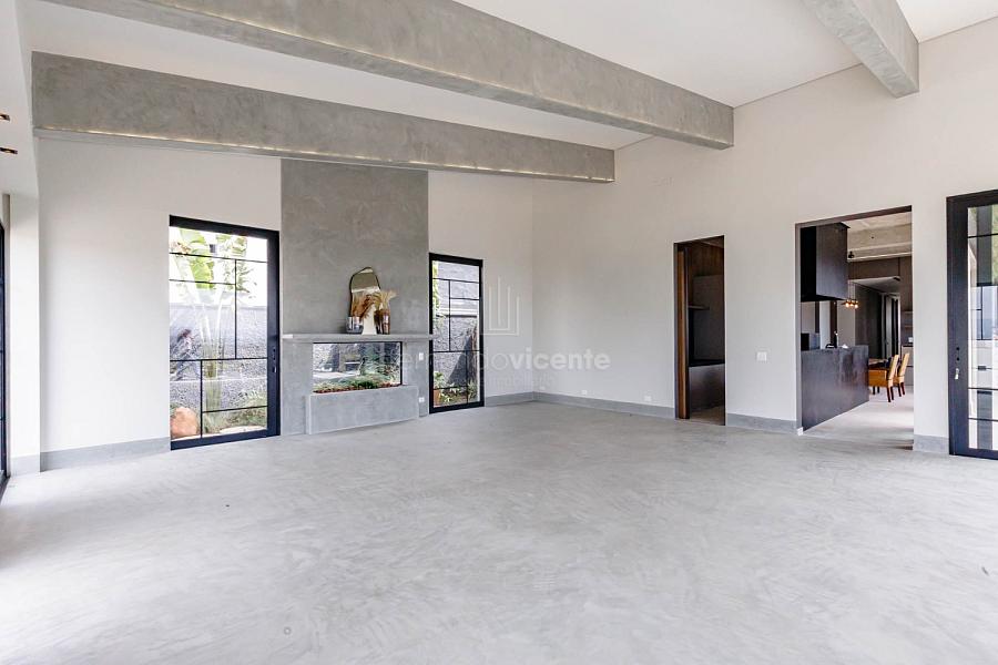 • Áreas Sociais Imponentes: Uma sala de estar com pé-direito inclinado de até 5 metros, lareira e fogo de chão, ideal para momentos acolhedores. A sala de jantar, harmoniosamente integrada, convida a celebrações memoráveis.