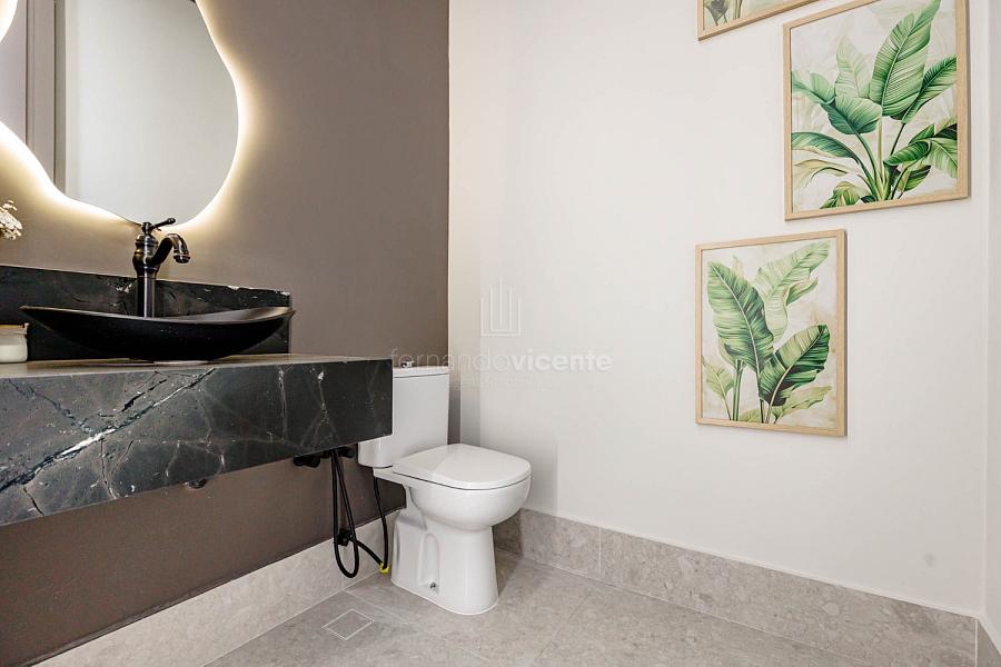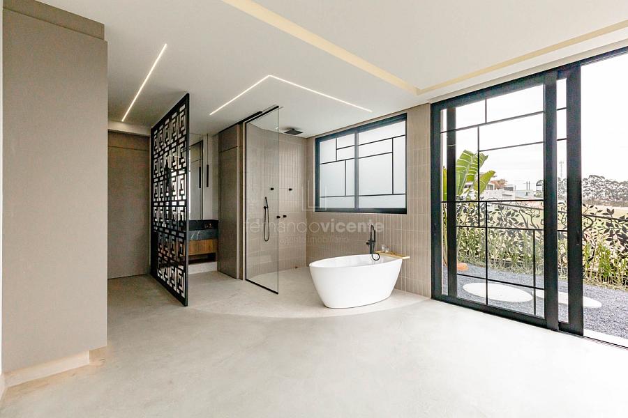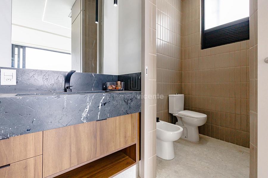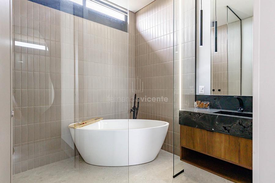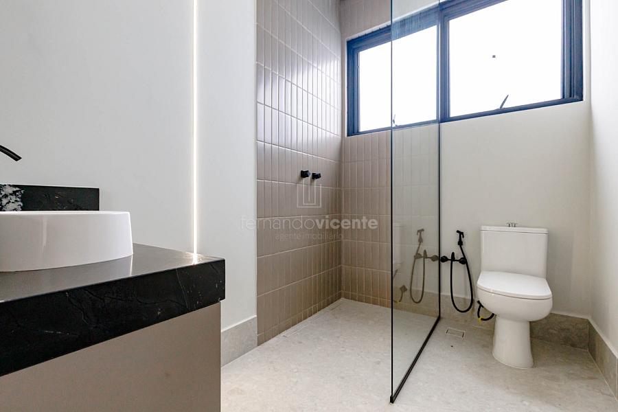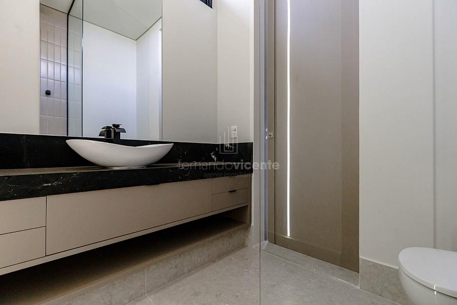 • Conveniência e Privacidade: Lavabo interno e outro exclusivo para a área da piscina, lavanderia completa com banheiro de serviço (com potencial para quarto auxiliar), um escritório privativo para foco e concentração, e um bar elegante.