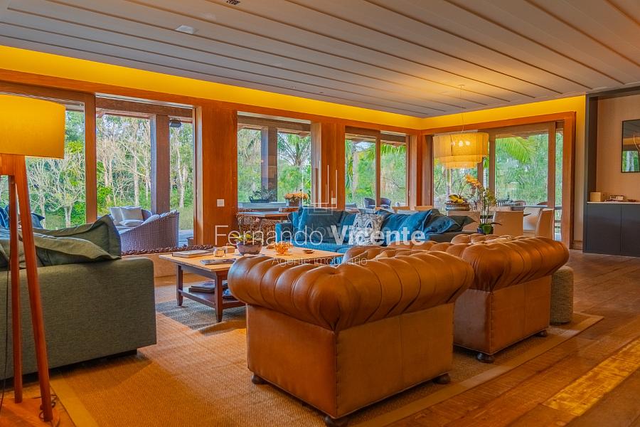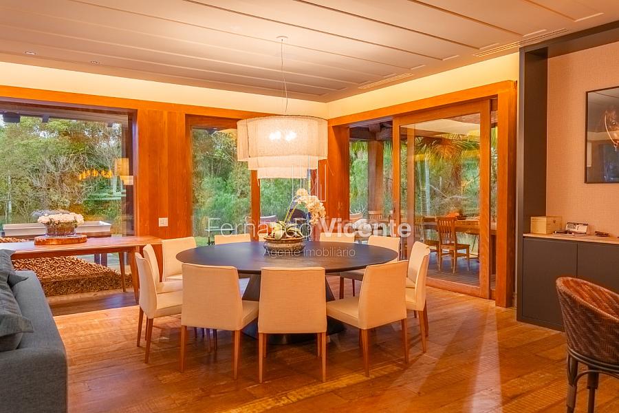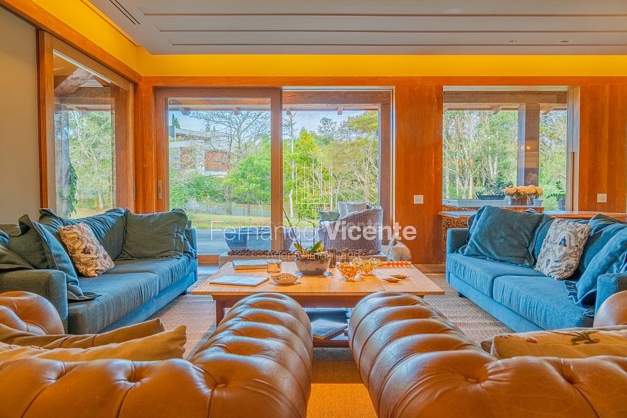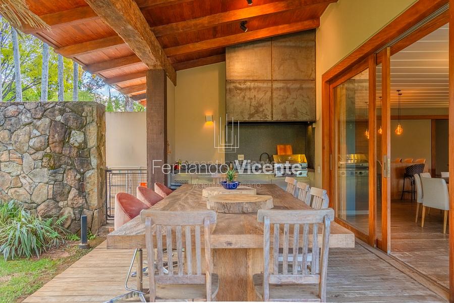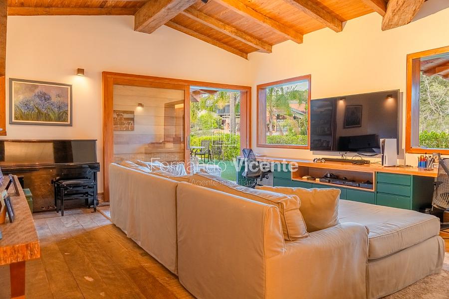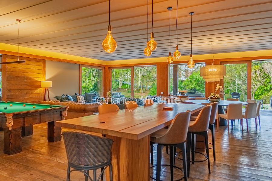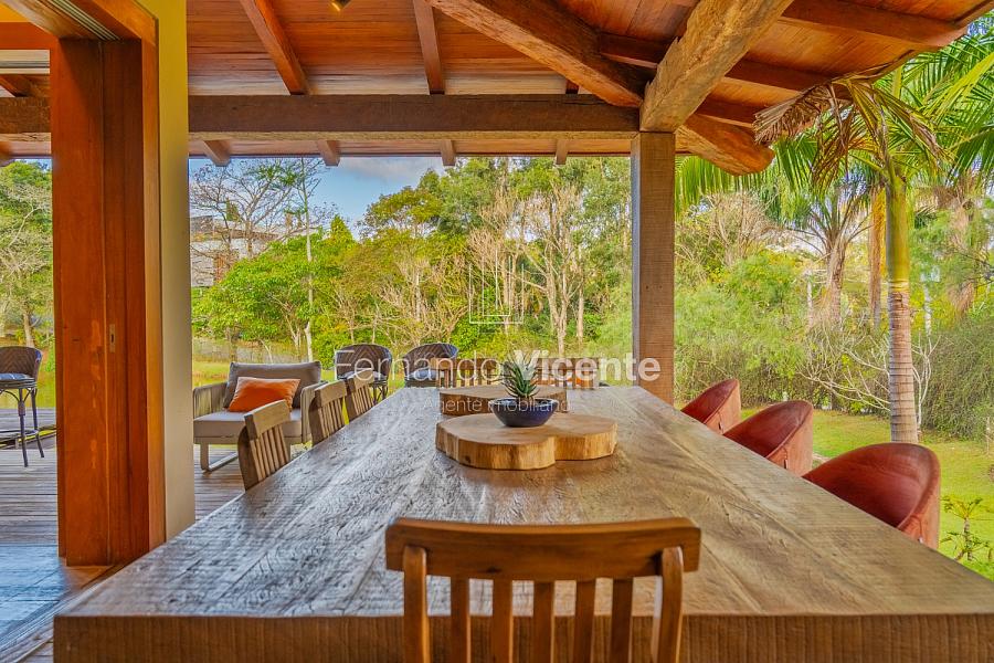 Esta é uma propriedade para quem valoriza a unicidade. Com 850 m² de área construída em um lote de 3.000 m², o projeto é um espetáculo de requinte, erguido com madeira de demolição e madeira de lei. As vigas e colunas imensasconferem um luxo rústico e exclusivo, transformando a casa em uma galeria de arte viva.