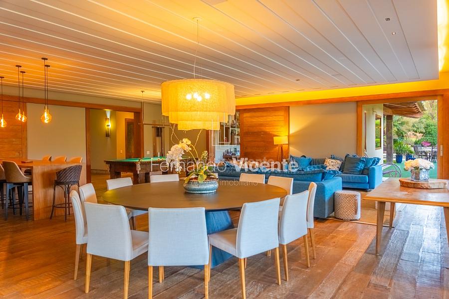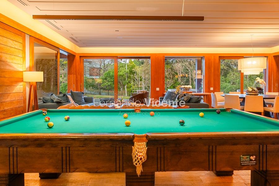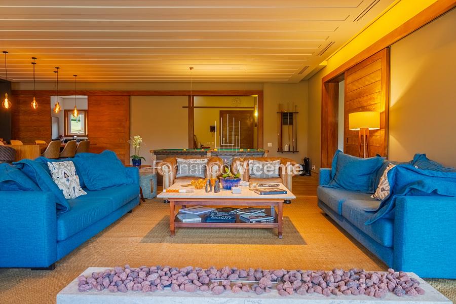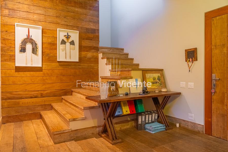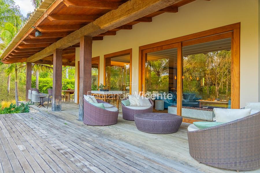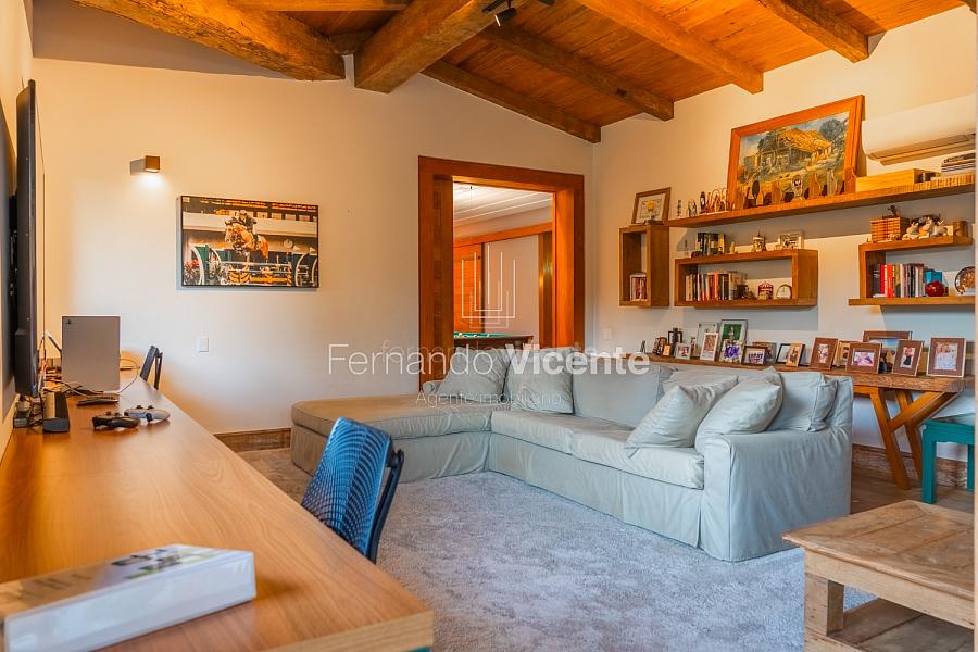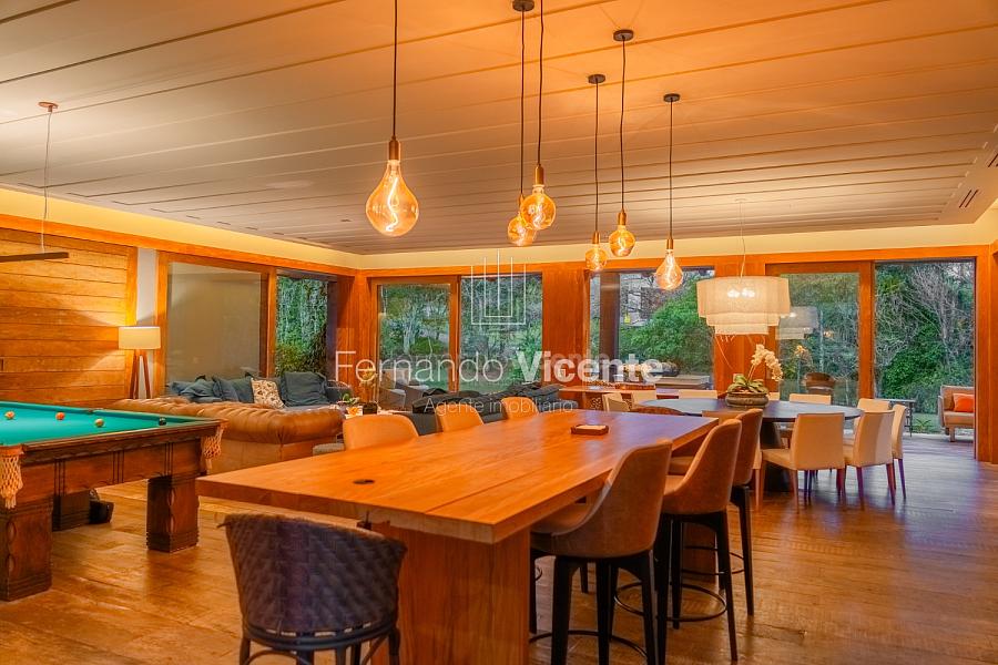 Esta é uma propriedade para quem valoriza a unicidade. Com 850 m² de área construída em um lote de 3.000 m², o projeto é um espetáculo de requinte, erguido com madeira de demolição e madeira de lei. As vigas e colunas imensasconferem um luxo rústico e exclusivo, transformando a casa em uma galeria de arte viva.