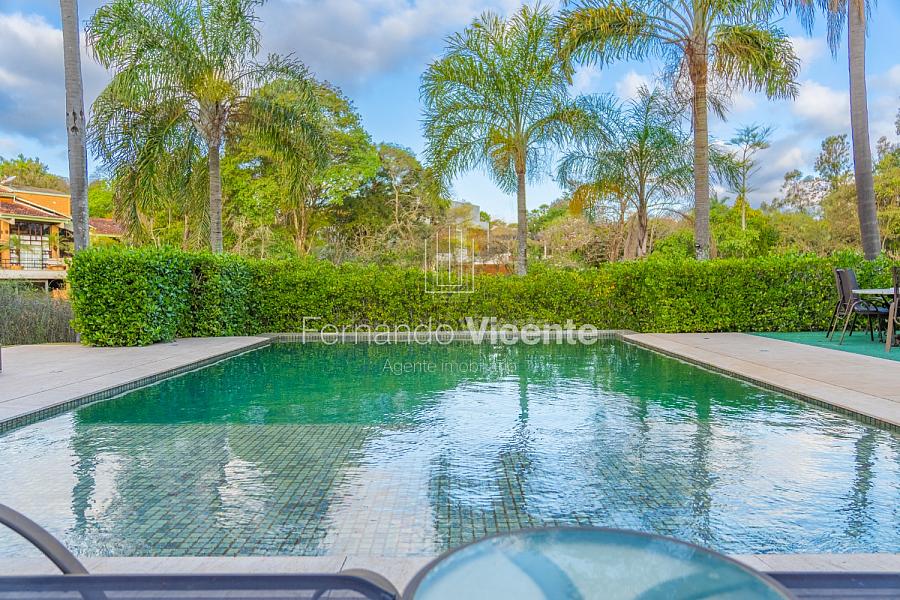 A área externa é um convite ao lazer e à celebração. A varanda gourmet com churrasqueira está perfeitamente integrada, com vista para a deslumbrante piscina em pastilhas e o quintal gramado.
