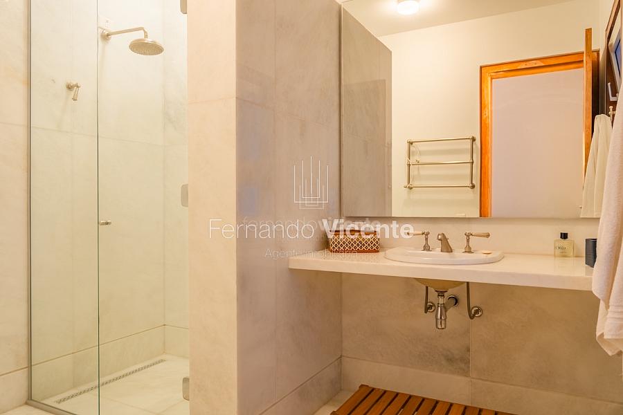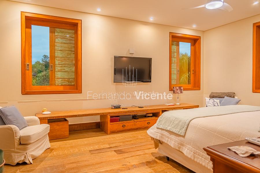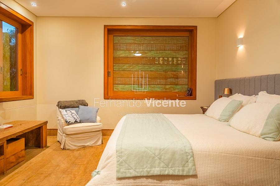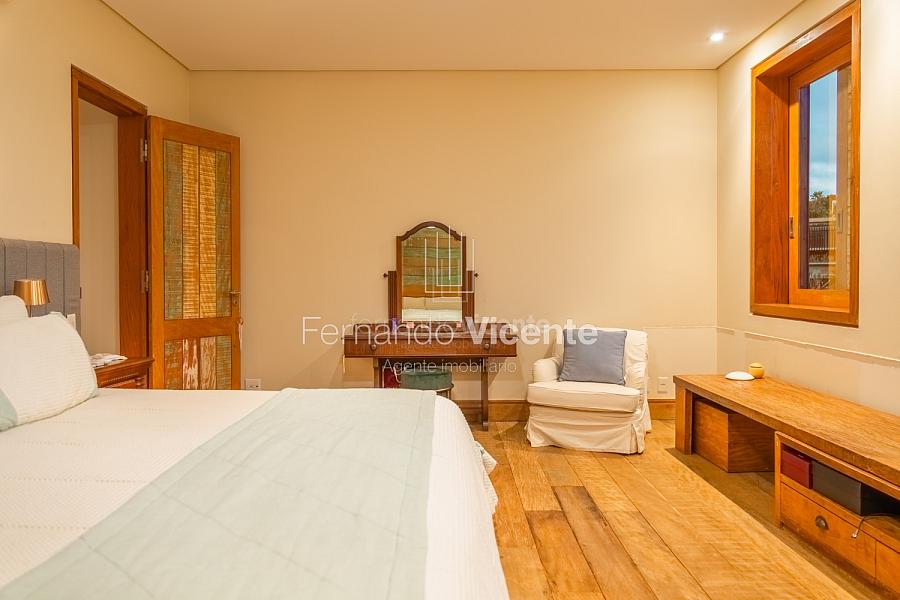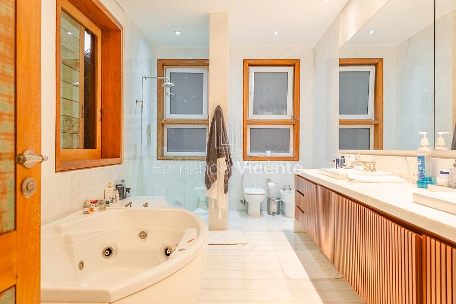 • Pavimento Superior: Apresenta três suítes, com a suíte master principal, dotada de um amplo closet, banheira de hidromassagem e acabamento em mármore.