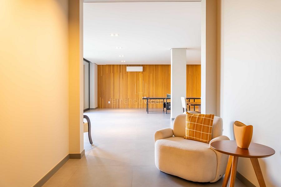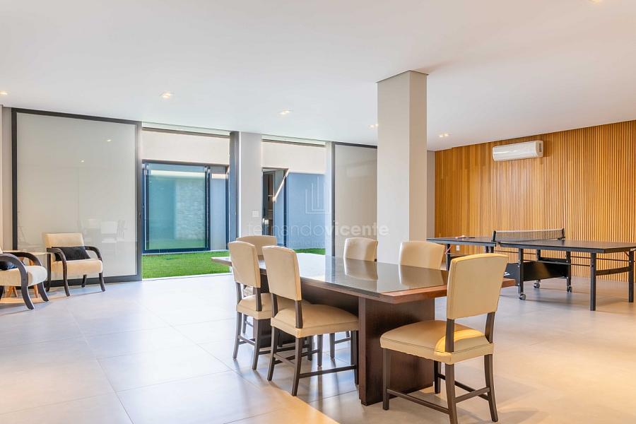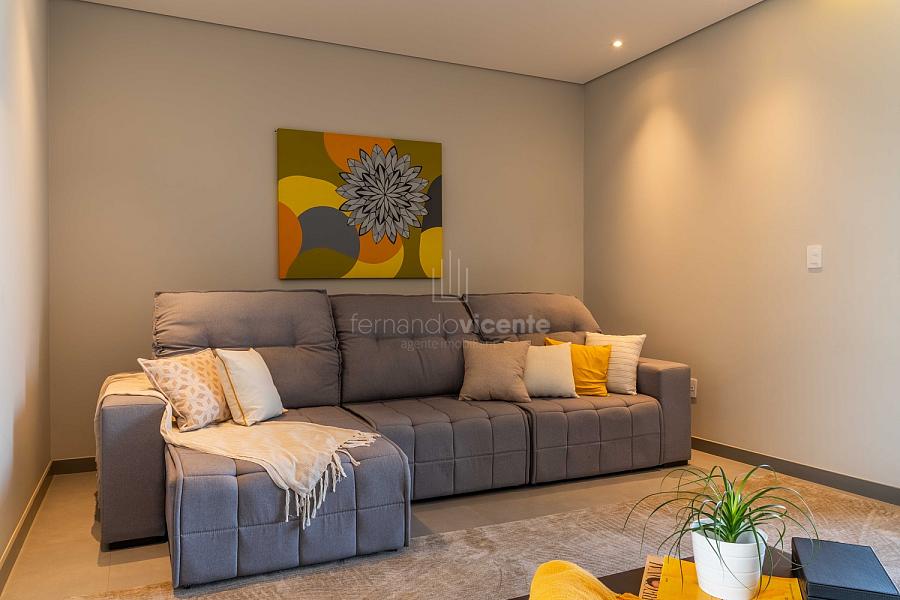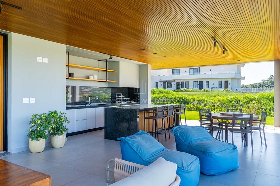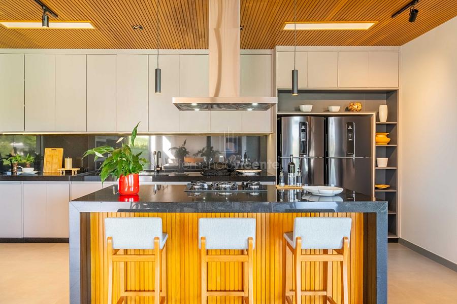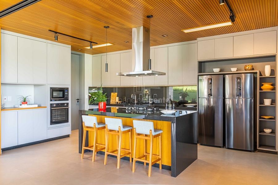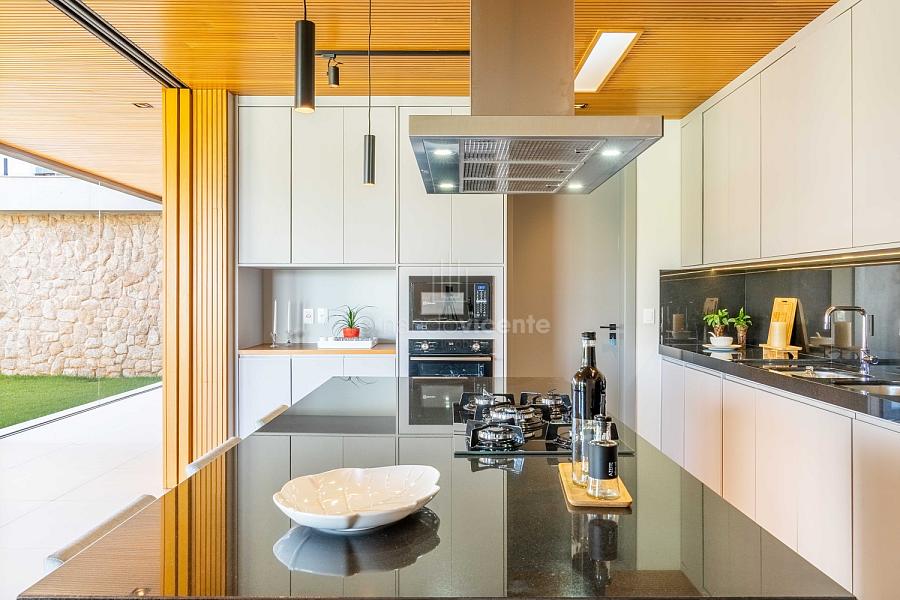 - Living amplo com lareira, home theater, lavabo e cozinha completa em conceito aberto com ilha + área de serviços dedicada.