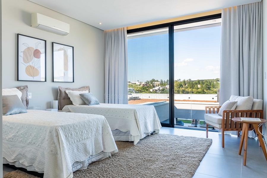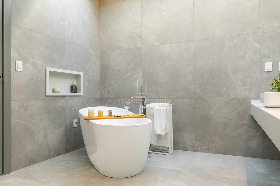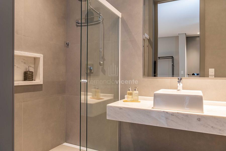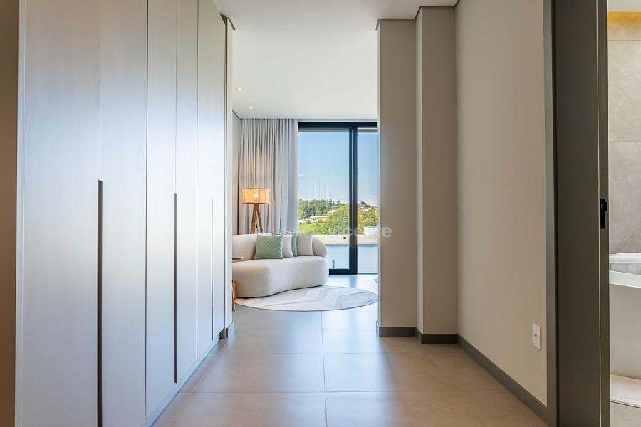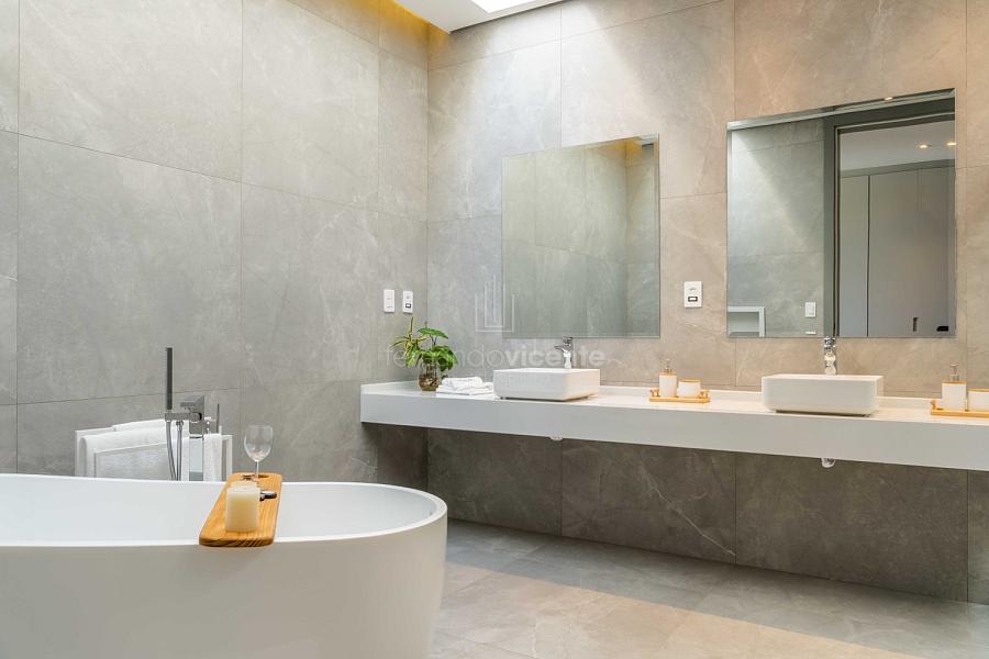 - 5 suítes privativas com varandas, incluindo a master suíte com vista panorâmica, closet generoso e hidromassagem.