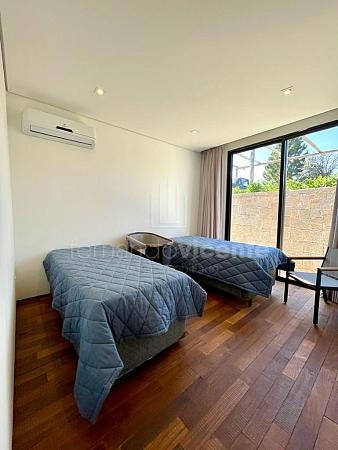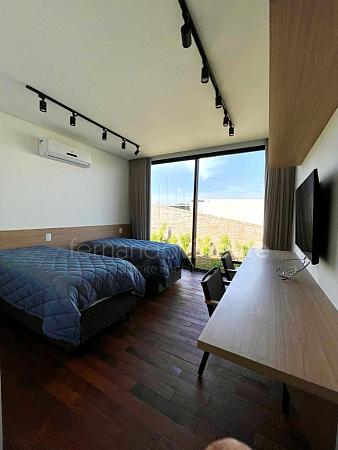 Casa conta com 5 suítes com vista para piscina e como a casa fica no ponto alto você tem vista de todo condomínio, conta ainda com sauna úmida dependência de empregada e uma maravilhosa quadra de beach tennis.