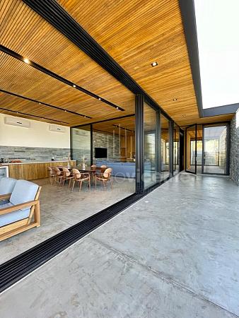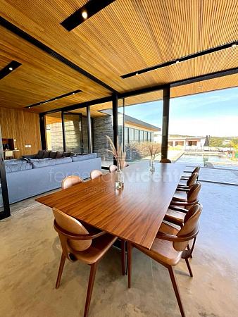 É uma casa preparada para receber visitas, onde elas se sentirão abraçadas, suítes aconchegantes e luxuosas. Os detalhes minimalistas, que mesclam acabamentos de alto requinte com materiais rústicos como pedra madeira e aço traduzem a alma da arquitetura desta casa!