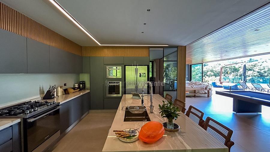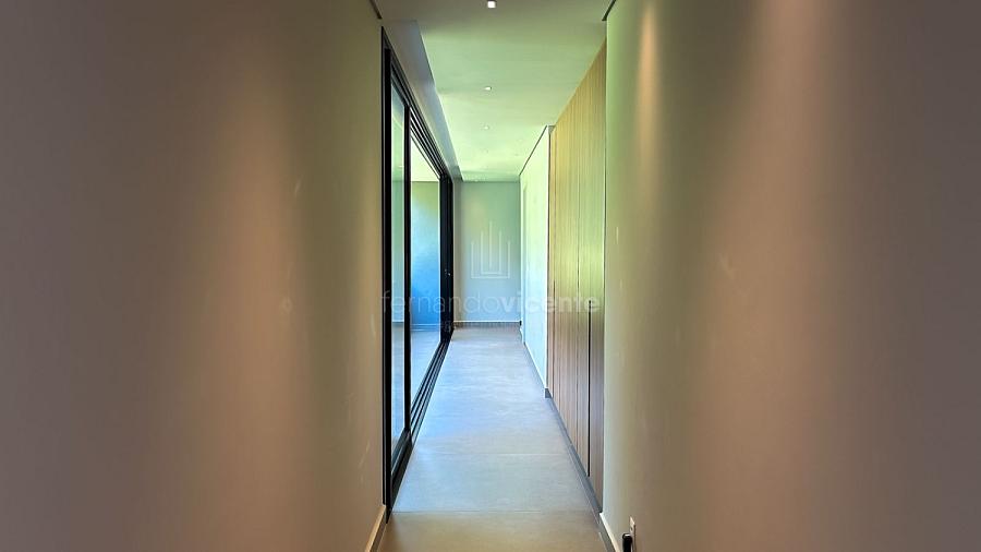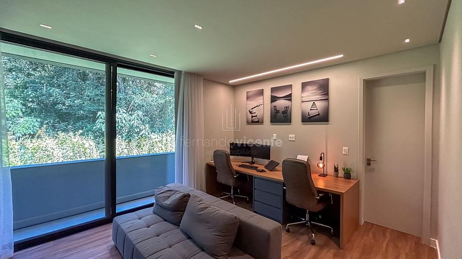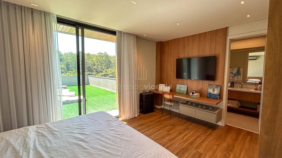 Imagine acordar em uma das cinco suítes e ter o horizonte como sua primeira visão do dia. A sala é imensa, banhada por luz natural e com aquele pé-direito alto que dá uma liberdade sem tamanho. É o cenário perfeito para os melhores momentos da vida.
