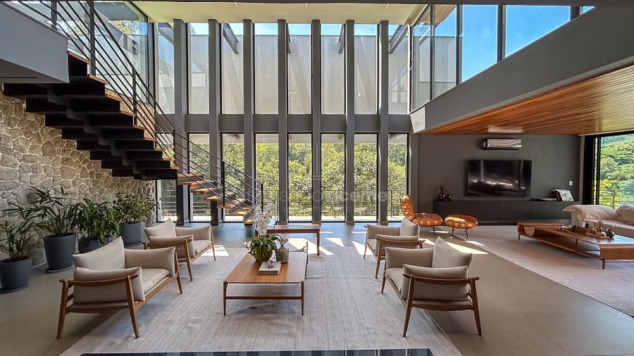 Sabe aquele lugar onde o tempo parece que resolveu caminhar mais devagar? É exatamente essa a sensação aqui. Essa casa não foi apenas construída, ela foi desenhada pelo Alexandre Chaguri para ser um refúgio onde o luxo se mistura com o verde de um jeito que você nunca viu.