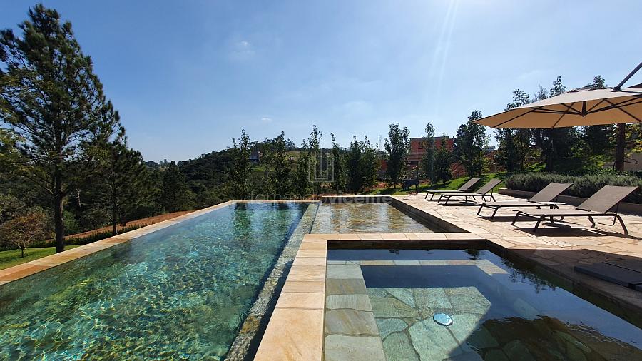 O ápice desta experiência sensorial é a piscina de borda infinita, uma joia arquitetônica que se funde ao horizonte, oferecendo um espetáculo visual emoldurado pela exuberante mata nativa. É o lugar ideal para se refrescar, relaxar e se reconectar com a essência da vida, envolto em luxo e natureza.