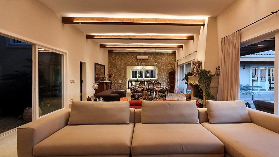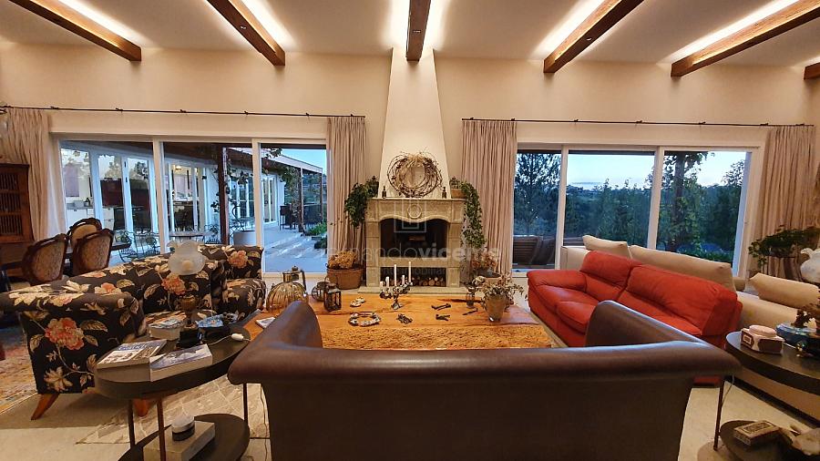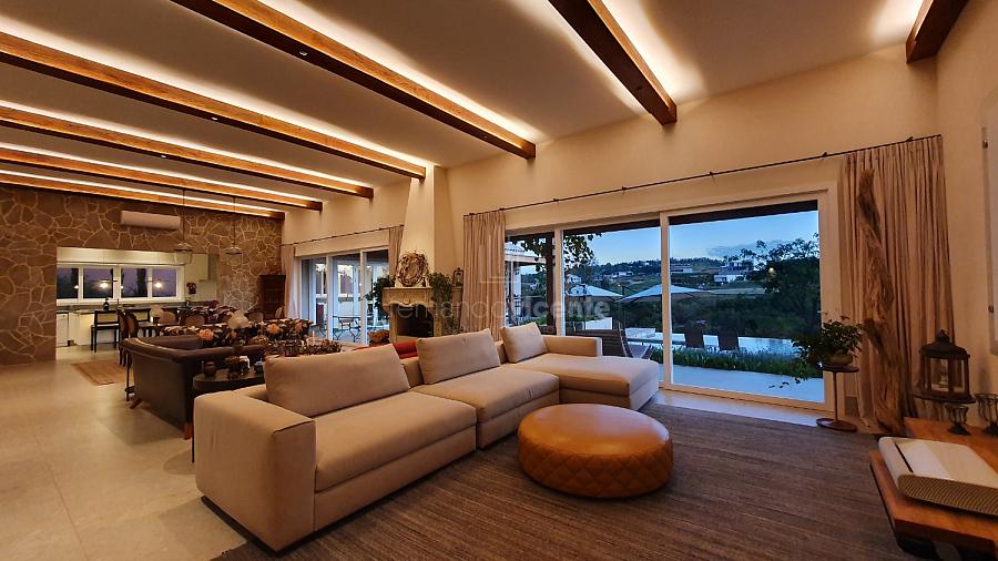 Os ambientes de convívio são uma celebração da arte de viver bem. O jardim de inverno, adornado por uma fonte que murmura suavemente, é um recanto de paz e contemplação. A sala de estar, dividida em três ambientes distintos e aquecida por uma lareira imponente, torna-se o coração da casa, ideal para encontros memoráveis e momentos de conexão.
