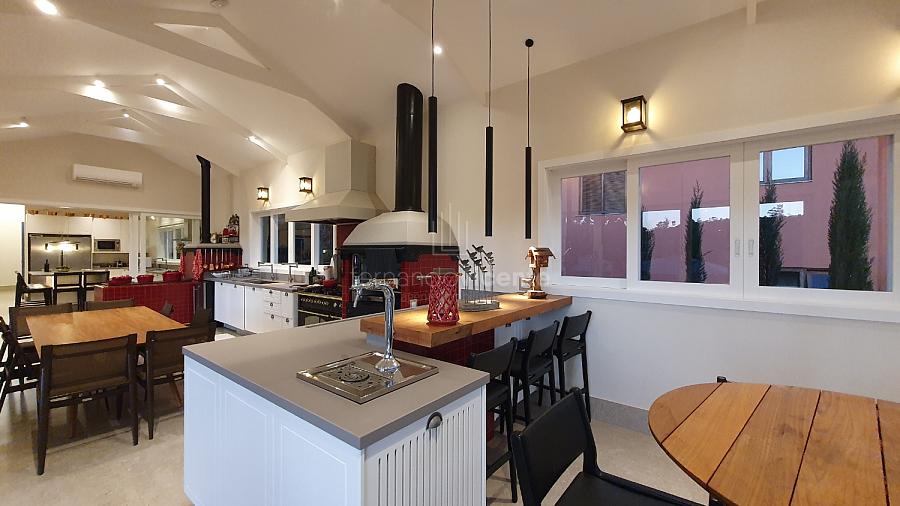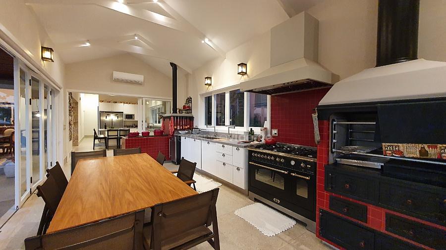 Os apaixonados por culinária encontrarão no espaço gourmet um verdadeiro paraíso. Equipado com churrasqueira, fogão e forno a lenha, este ambiente é uma ode à gastronomia, perfeito para preparar banquetes memoráveis enquanto desfruta da companhia de familiares e amigos em um cenário de rara beleza.